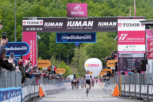 Tagliacozzo, 16 maggio 2025 – Juan Ayuso vince la sua prima tappa in un Grande Giro imponendosi nella Castel di Sangro-Tagliacozzo, primo arrivo in salita del Giro d’Italia 108. Lo spagnolo della UAE Team Emirates XRG ha attaccato all’interno dell’ultimo chilometro, guadagnando un margine sufficiente per tagliare il traguardo in solitaria. Alle sue spalle, a 4″, il compagno di squadra Isaac Del Toro ha regolato un gruppetto ristretto composto da Egan Bernal, Primož Roglič, Giulio Ciccone, Antonio Tiberi, Damiano Caruso e Richard Carapaz. Con Mads Pedersen attardato già nei primi chilometri dell’ascesa finale, Roglič è tornato a vestire la Maglia Rosa, che aveva già indossato dopo la cronometro di Tirana, con 4″ di vantaggio su Ayuso, nuova Maglia Bianca, e 9″ su Del Toro. La classifica resta cortissima: solo 48″ separano i primi quindici in classifica generale.