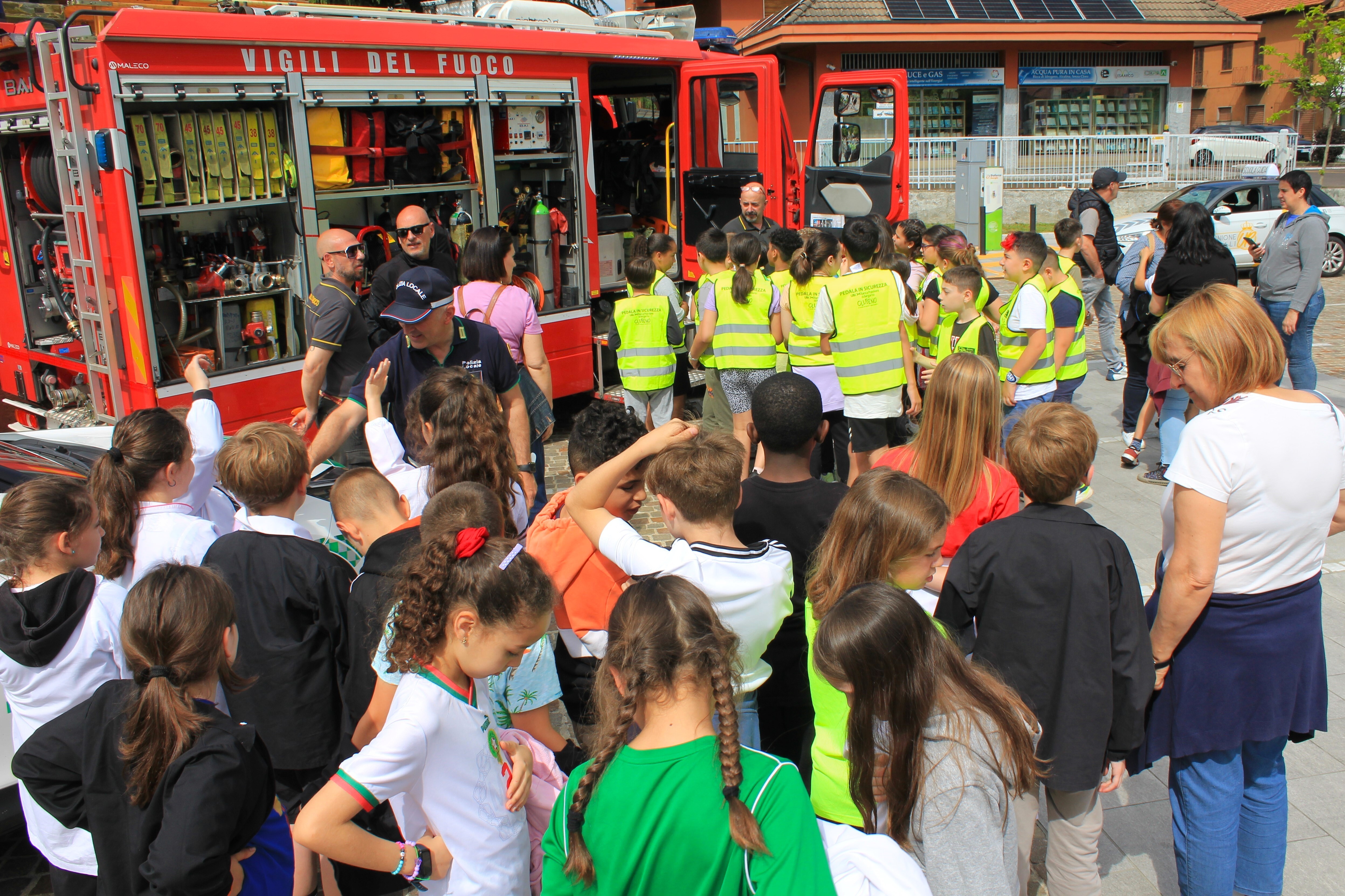 Alla dimostrazione pratica delle regole fondamentali di comportamento da seguire in strada hanno partecipato gli alunni delle classi seconda, terza, quarta e quinta della scuola primaria dell’istituto comprensivo statale “Dante Alighieri” di Cuveglio, che hanno pedalato in sella alle loro biciclette seguendo le direttive della Polizia Stradale di Luino distaccamento di Varese, della Polizia Locale di Cuveglio, della Guardia di Finanza di Luino e dei Vigili del Fuoco di Luino.