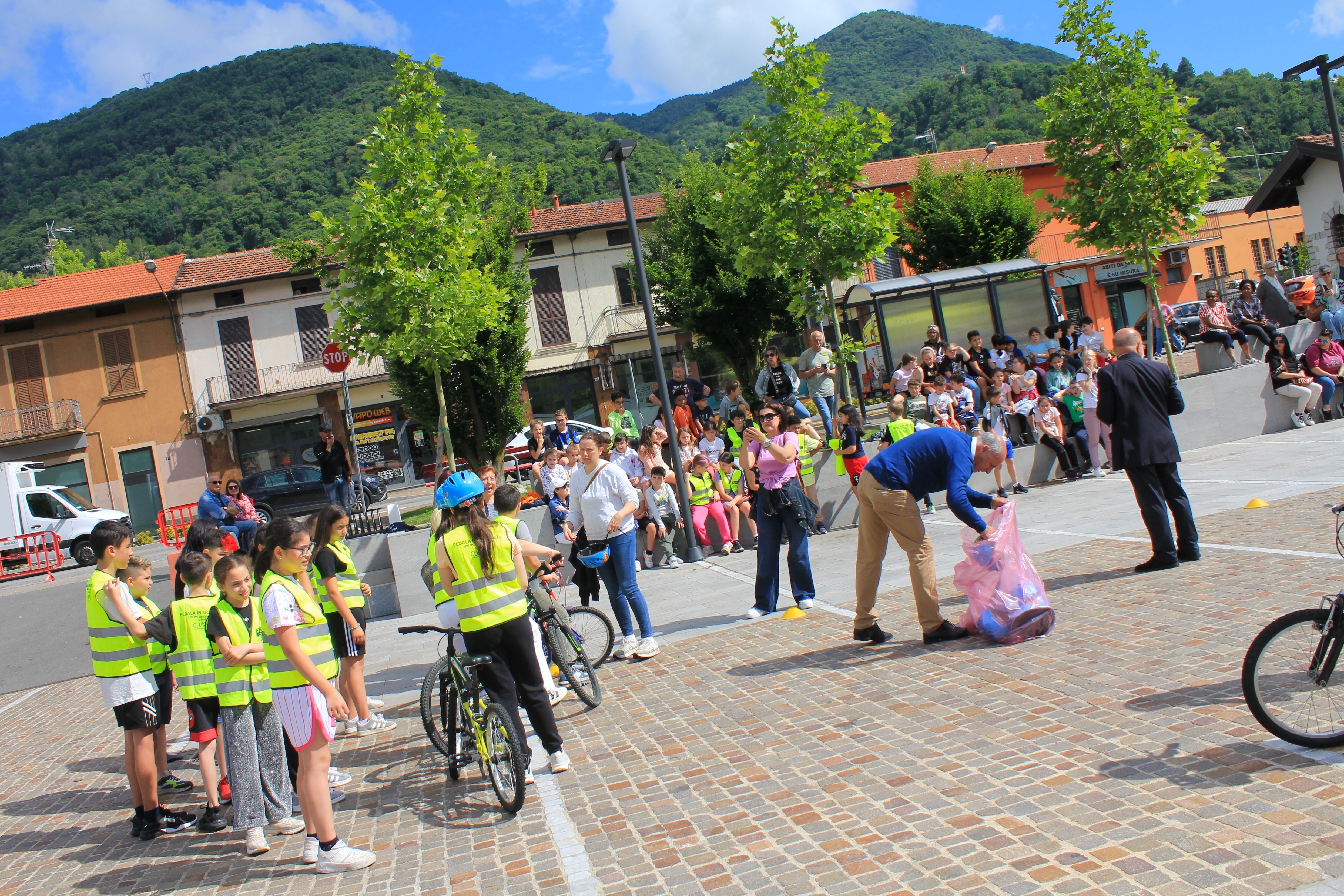 Oggi la rinnovata piazza Mercato di Cuveglio (VA) ha ospitato la giornata conclusiva del progetto scolastico di educazione stradale, promosso dalla Cycling Sport Promotion di Mario Minervino, “Pedala, Pedala… in Sicurezza!”