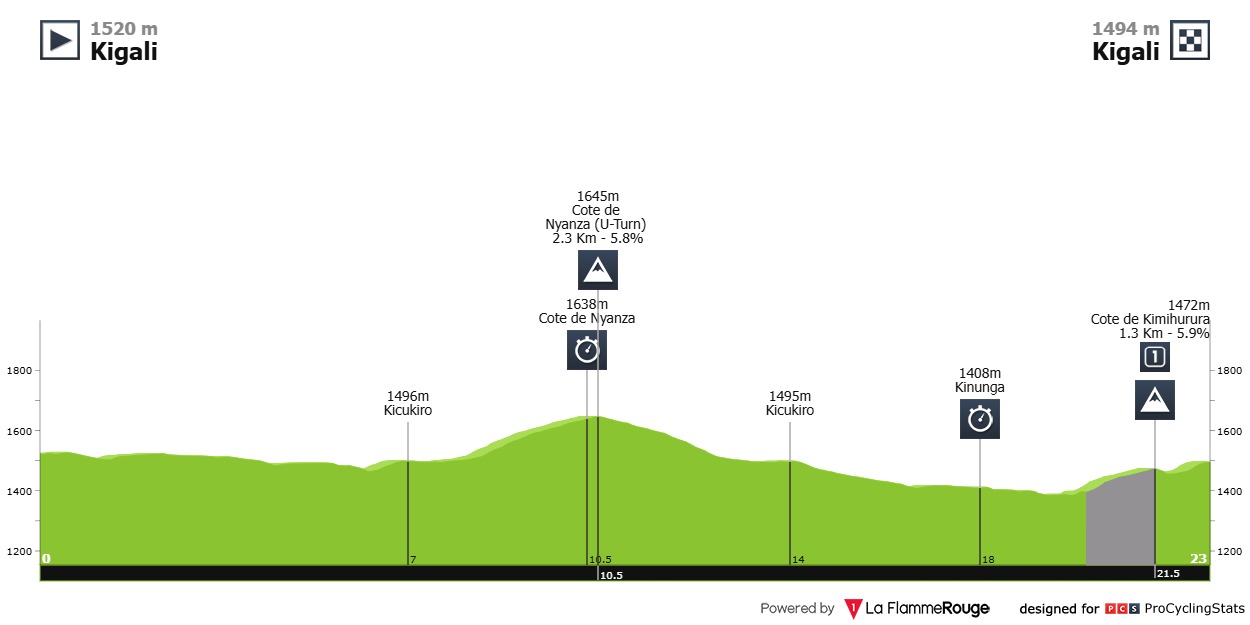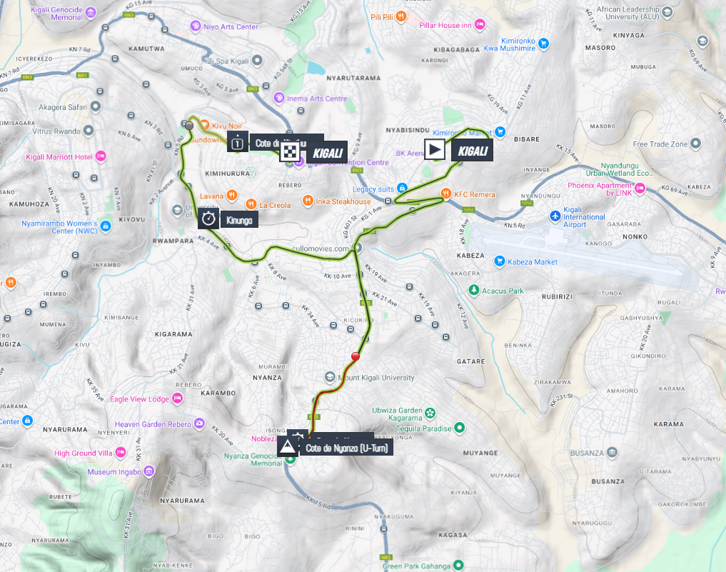 Il percorso era abbastanza duro con la “Cote de Nyanza” Km 2,3 al 5,8% affrontata dal versante più impegnativo e la “Cote de Kimihuru” km 1,3 al 5,9% che oltre alla salita proponeva il suo bel….”Pavè”.