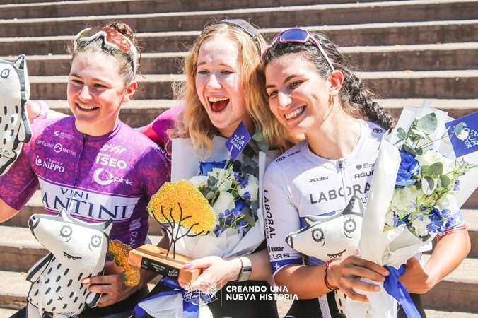 La corsa si è conclusa con uno sprint a ranghi compatti che ha visto prevalere nettamente l’olandese Mariolein Geloof Van’T (Laboral Kutxa-Fundacion Euskadi) nata aDirksland in Olanda il 23 Marzo 1996 davanti alla nostra Vittoria Grassi (Vini Fantini-Be Pink) nata a Rivoli (Torino) il 14 Luglio 2005 e, terza a completare il podio la cilena Catalina Anais Soto (Laboral Kutxa-Fundacion Euskadi) nata a Santiago (Cile) l’8 Aprile 2001