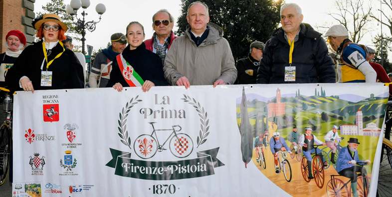 Pistoia,1° febbraio 2026 – Favorita da una bella mattinata di sole anche se un po’ freddina, ha riscosso un altro grande successo la Firenze-Pistoia rievocazione storica della prima gara ciclistica in Italia del 2 febbraio 1870.