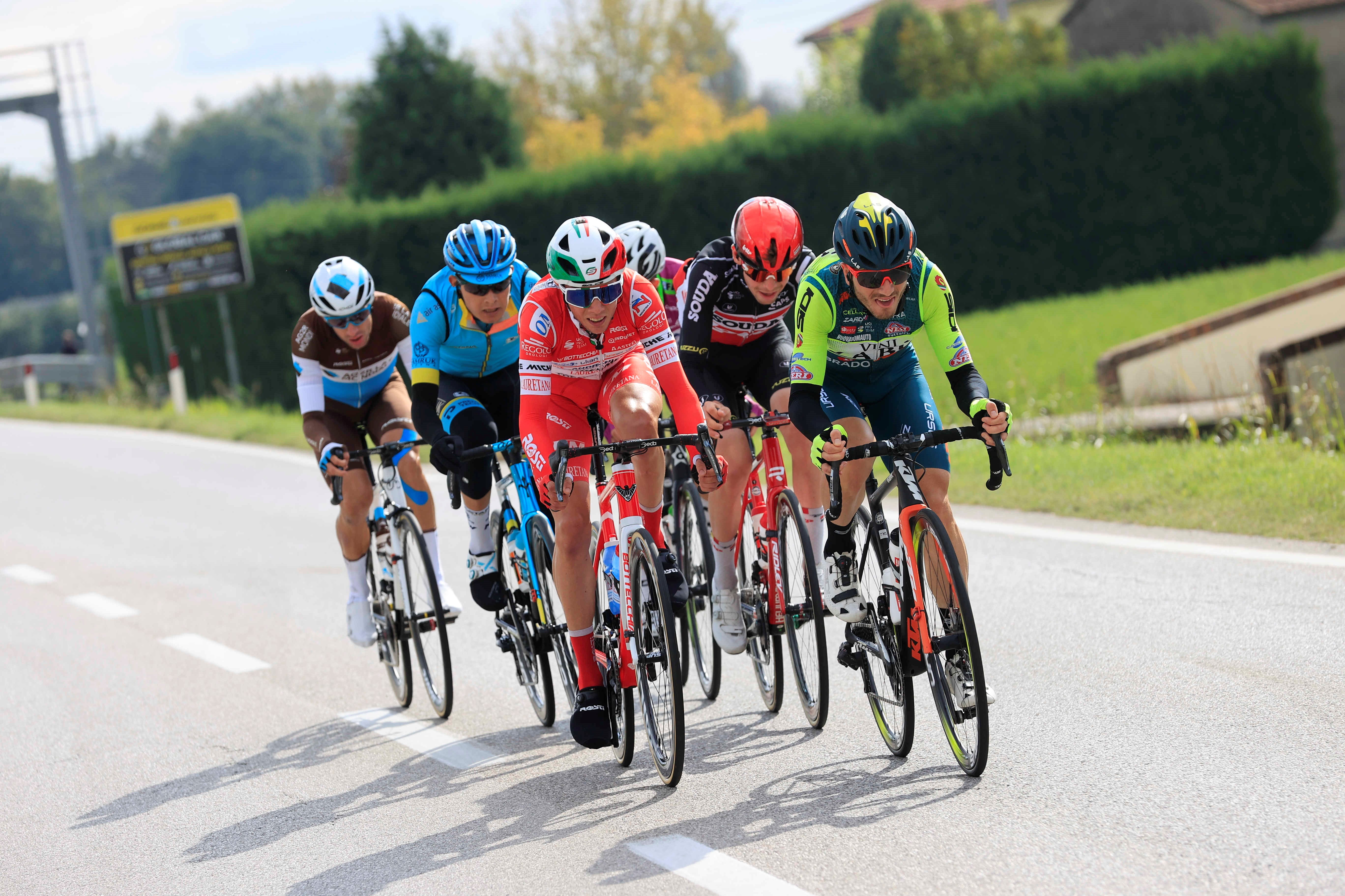 Ripreso Rota, e con lui gli altri fuggitivi della prima ora, Visconti ha tenuto duro anche sulla salita di Calaone, scollinando a una ventina di secondi dal gruppo di testa senza però riuscire a rientrare nel tratto finale pianeggiante.