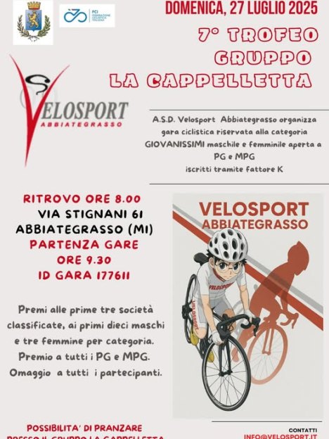 Settima edizione della gara ciclistica dedicata al Gruppo della Cappelletta ad Abbiategrasso con la regia del Velo Sport Abbiategrasso, Società che viaggia verso il secolo dalla fondazione e che attualmente è presieduta da Vito Romanò.