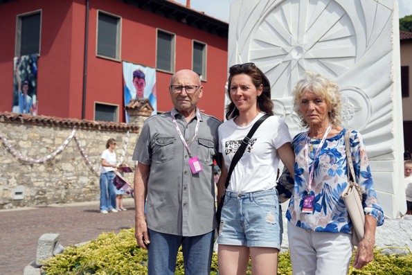 La Maglia Rosa Jonathan Vervenne con Sergio e Rosa Casartelli, genitori di Fabio, oro olimpico a Barcellona 1992, che ha perso la vita tragicamente al Tour de France del 1995. Albese con Cassano era il suo paese d’origine