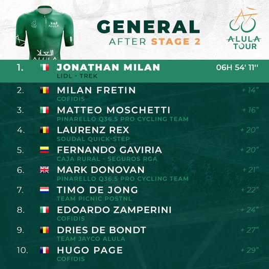 | 1 | JONATHAN MILAN | 11 | LIDL-TREK | 03h 17′ 59” | – | B : 10” | – |