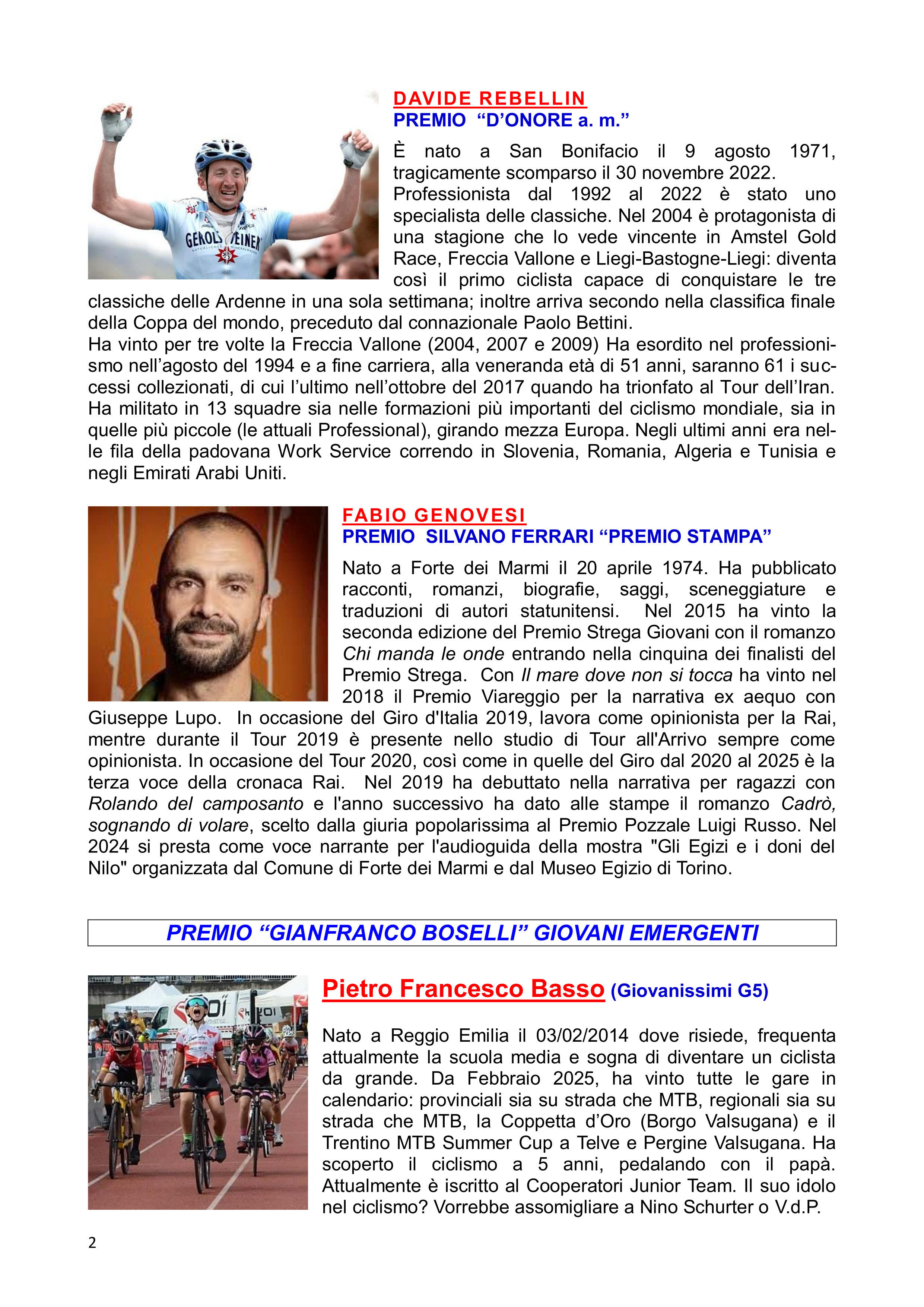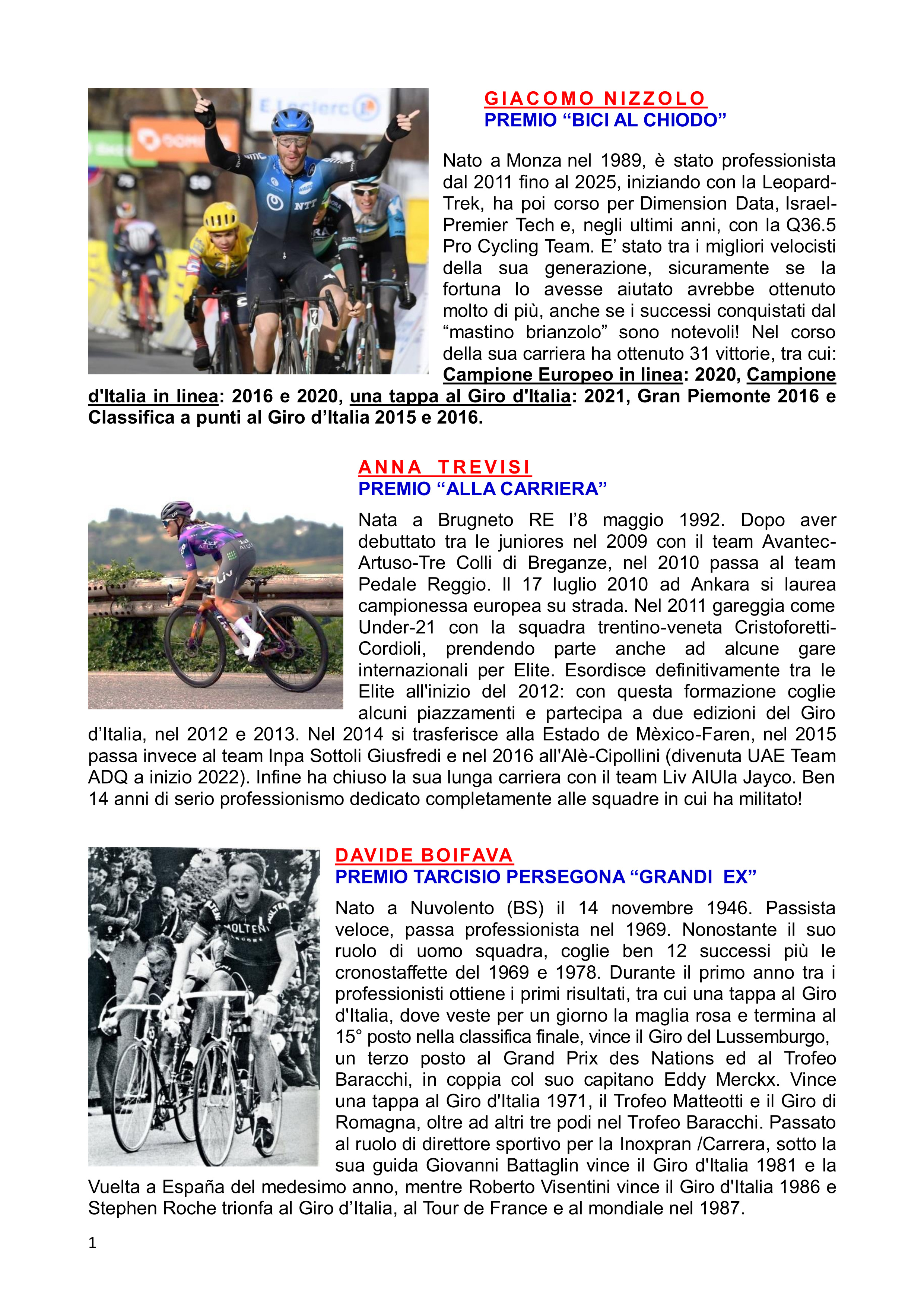 21° Bici al Chiodo : Profili dei Premiati