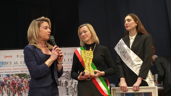 Il premio alla Carriera è stato consegnato ad Anna Trevisi dall’Assessore Roberta Farioli, mentre il premio d’onore è andato alla memoria di Davide Rebellin, rappresentato dalla mamma Brigida e dai nipoti Andrea Stella e Devis che hanno ricevuto la targa da Giammaria Manghi, coordinatore delle politiche sportive della Regione Emilia-Romagna.