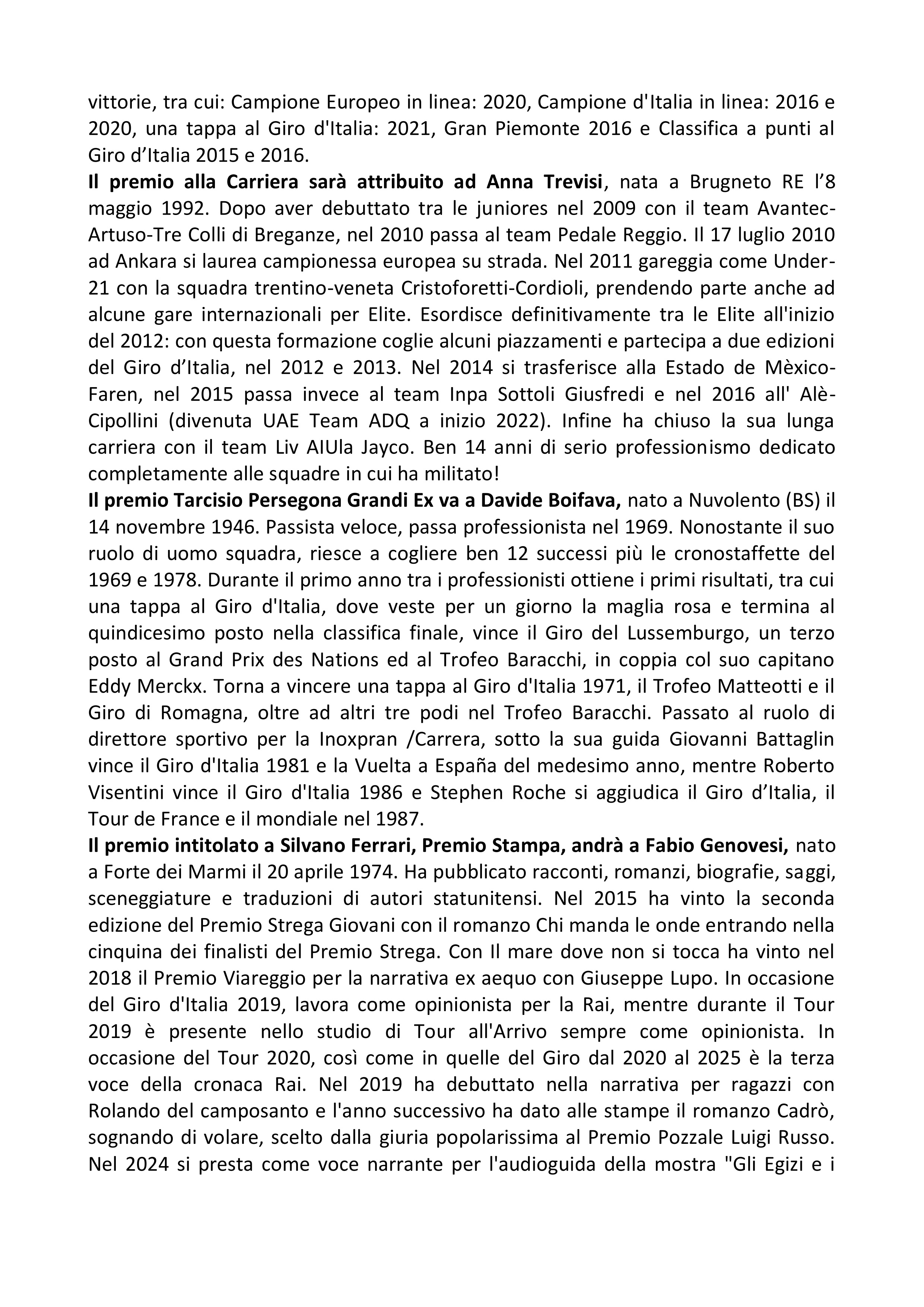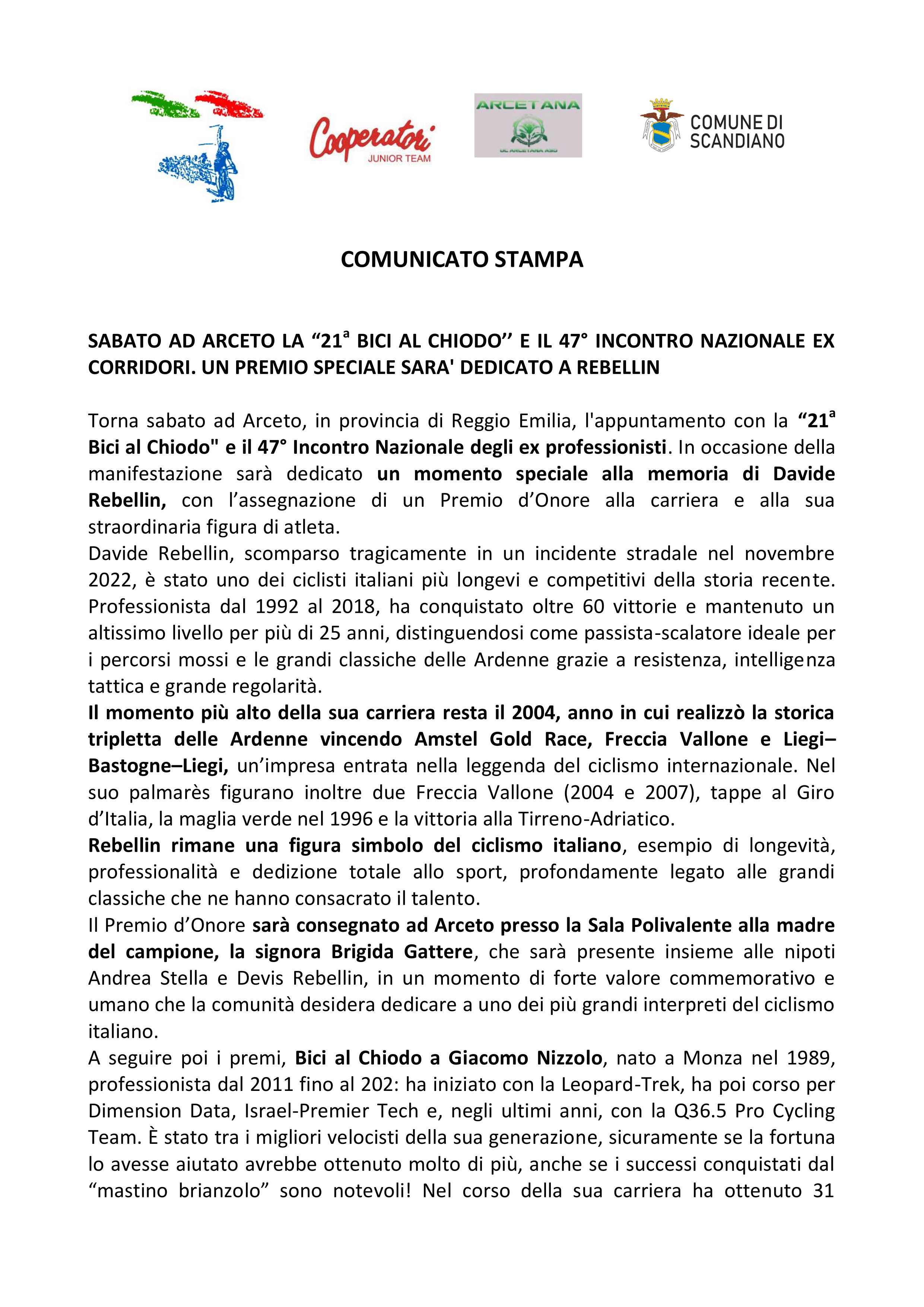 Bici al Chiodo 2026 – Premio Speciale Davide Rebellin