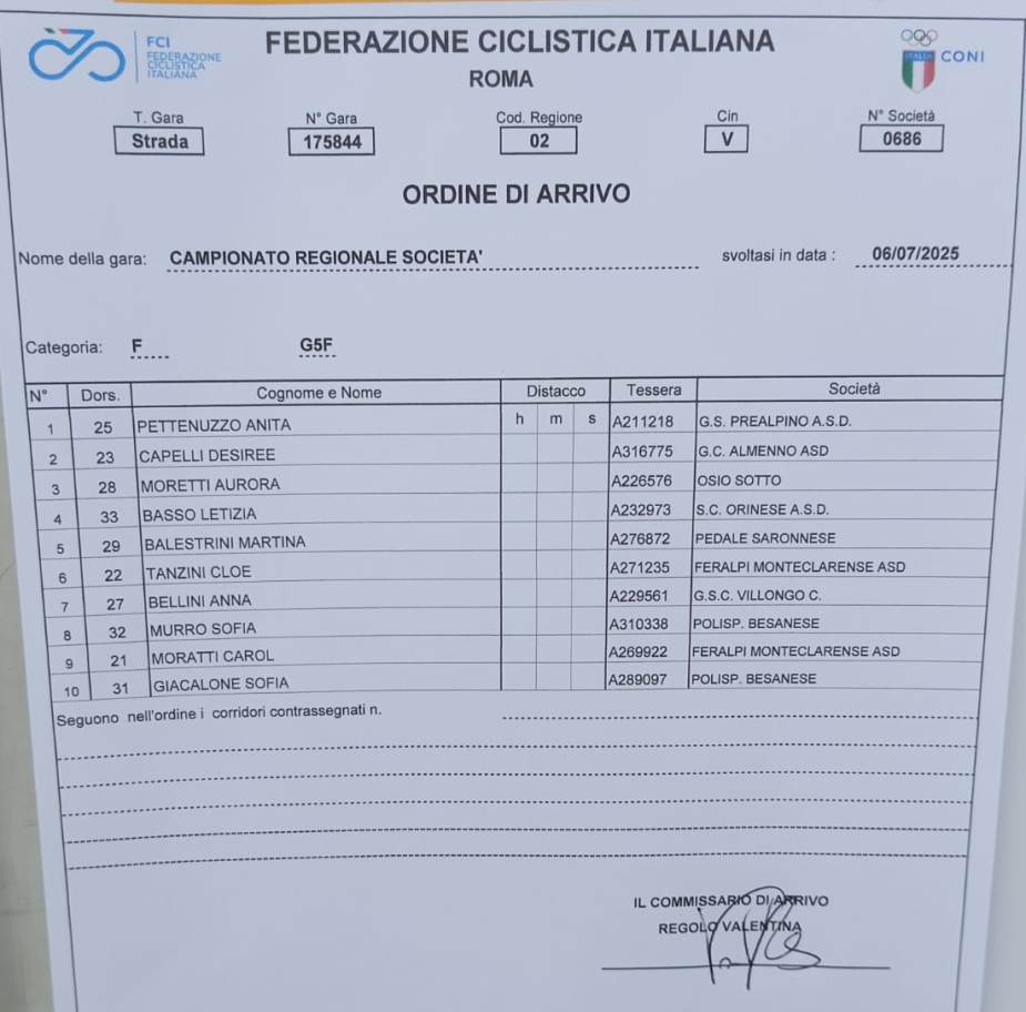Unico successo per le Società varesine e altomilanesi, è stato conquistato da Anita Pettenuzzo salita sul gradino più alto del podio nella categoria G5-F, una grande soddisfazione sia per la Società del Presidente Zoia che per tutto il movimento ciclistico giovanile sia varesino che altomilanese.