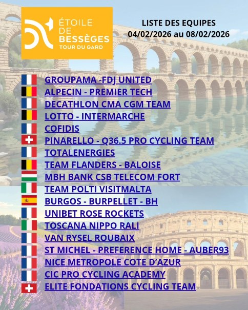 I protagonisti sono : il belga Victor Vercouille (Team Flanders Baloise); il francese Leandre Huck (Van Rysel Roubaix); il finlandese Jaakko Hanninen e lo svizzero Nils Abersold (Elite Foundation Cycling Team).