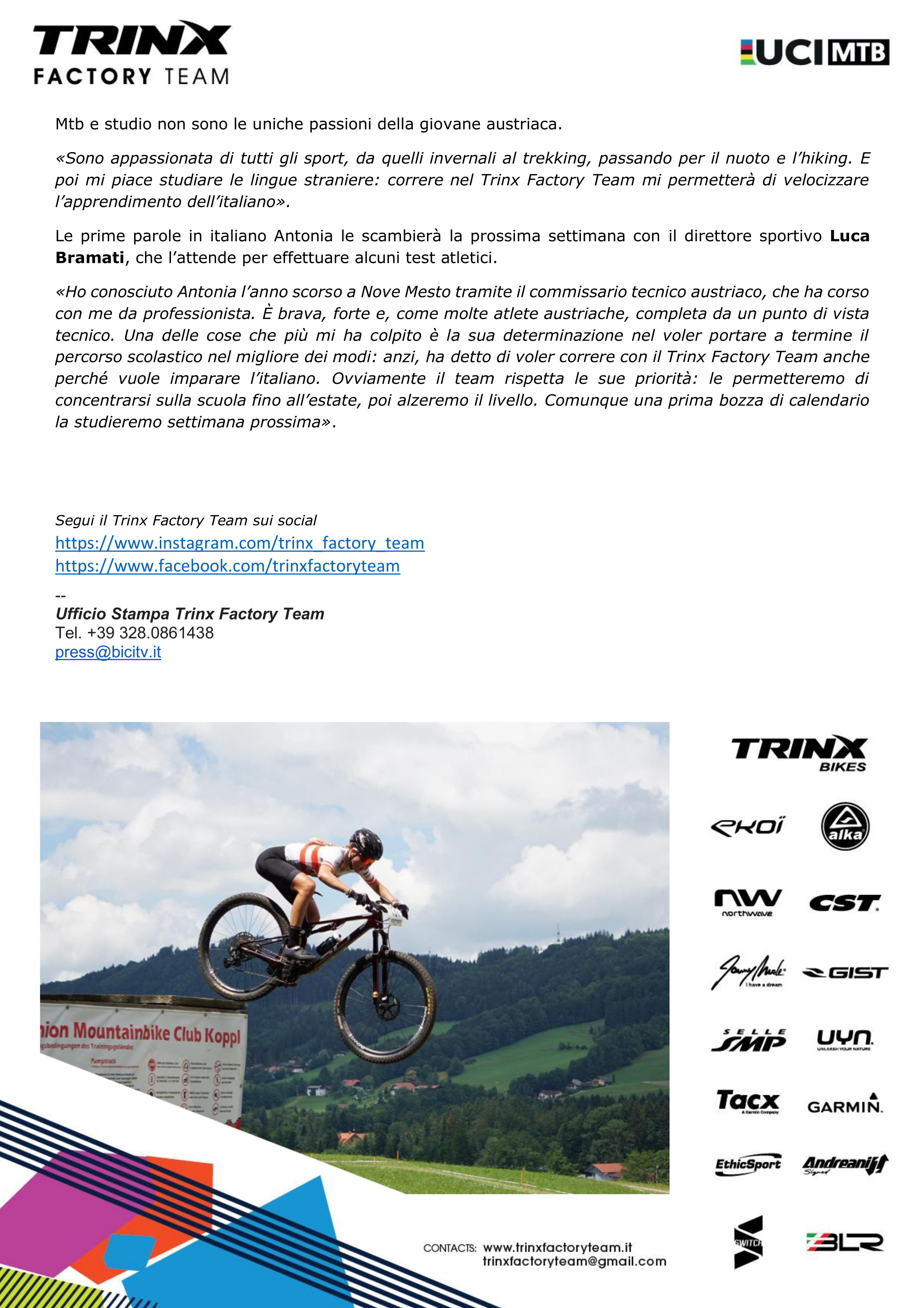 Il Trinx Factory Team ingaggia la Campionessa d’Austria Antonia Grangl