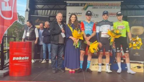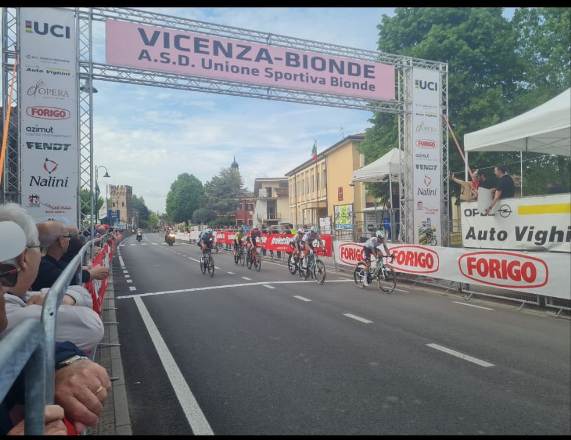 Al suono della campana che annuncia l’ultimo giro da percorrere, il gruppo torna compatto e si prepara alla volata a ranghi compatti con Matteo Fiorin pronto ad alzare le braccaia al cielo spuntandola su tutti gli avversari.