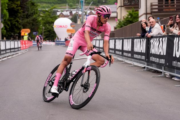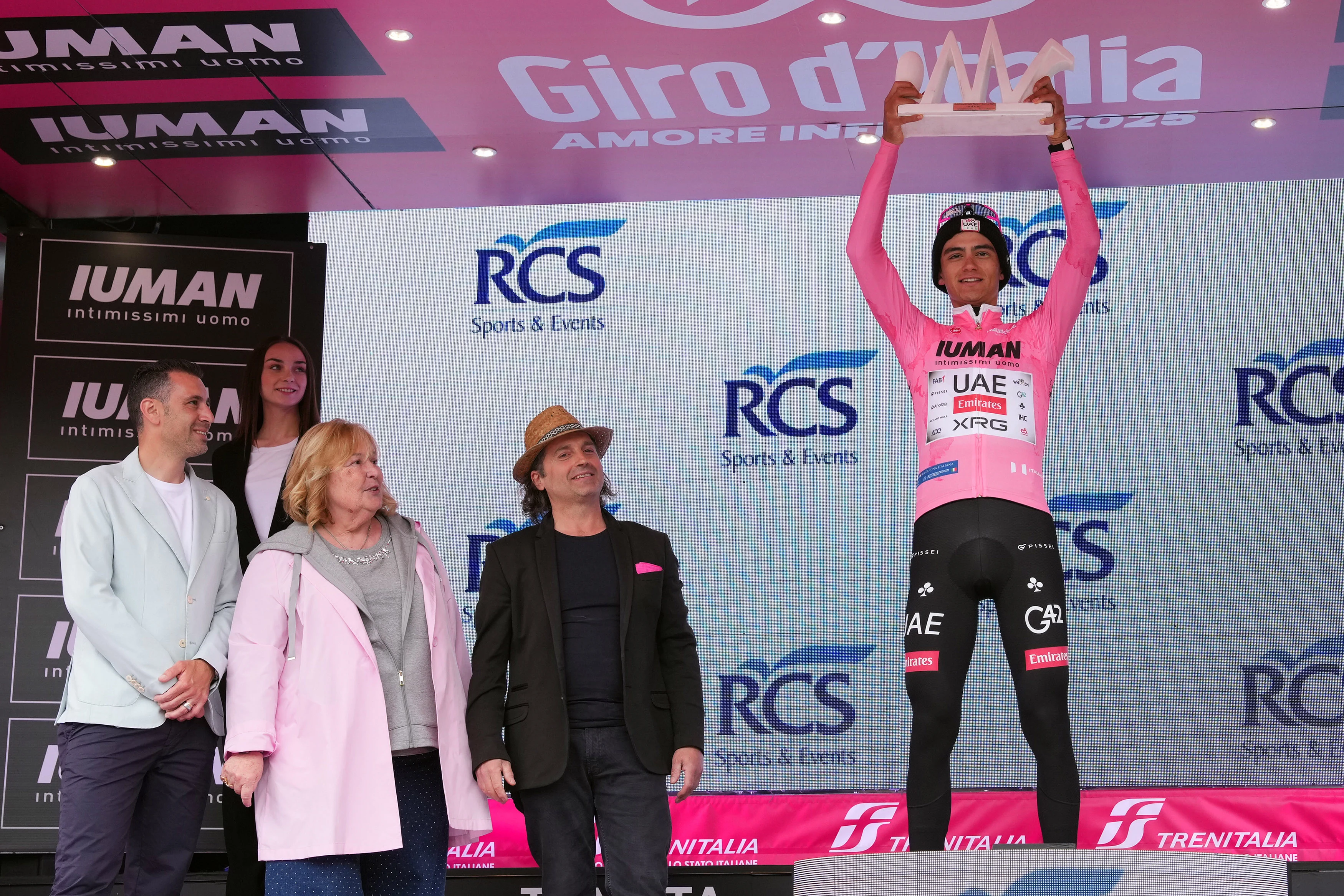 Maglia Rosa, leader della Classifica Generale, sponsorizzata da IUMAN – Intimissimi Uomo – Isaac Del Toro (UAE Team Emirates XRG)
