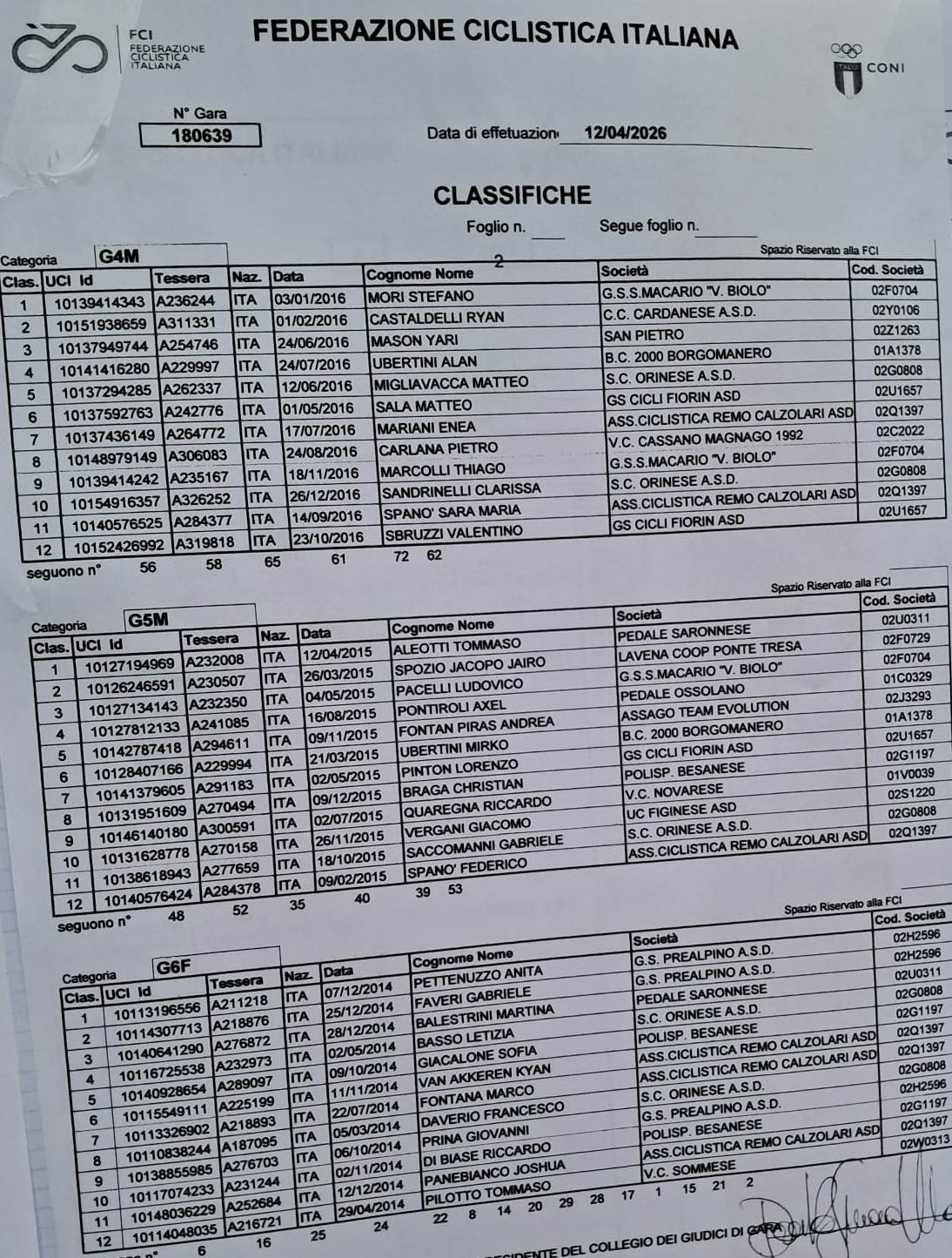 I due Atleti oggi hanno approfittato dell’occasione per festeggiare i propri compleanni che per il G5 Tommaso Aleotti cadeva proprio oggi domenica 12 aprile per i suoi 11 anni in compagnia di Samuele Volontè che festeggiava anche lui il suo compleanno, 7 anni compiuti ieri sabato 11 aprile.