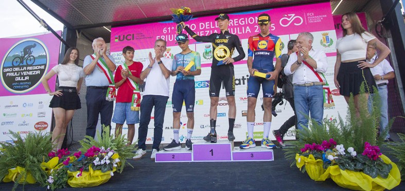 All’altezza dell’ultimo Gpm di Rosazzo, arriva l’attacco di una coppia formata da Hector Martinez Alvarez (Lidl Trek Future Racing) ed Enea Sambinello (UAE Team Emirates Gen-Z) che raggiungono 34” di vantaggio. Il gruppo principale, però, reagisce e a due chilometri e mezzo dal traguardo va a chiudere il gap sui battistrada preparando l’arrivo in volata.