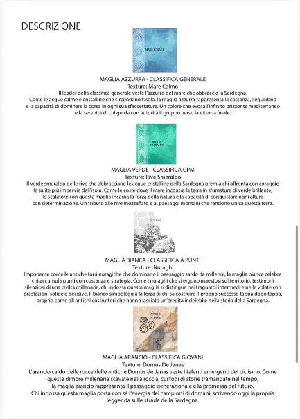 Quattro maglie a classificare i leaders delle varie classifiche. cinque tappe da Castelsardo ad Olbia, 25 Squadre al via col Giro di Sardegna si aprirà ufficialmente la stagione agonistica su strada in Italia con i professionisti in parata toccando tutte le coste della Sardegna dal 25 febbraio al 1° marzo spalmato in 5 tappe, 830 i chilometri totali, per un dislivello di 2.740m.s.l.m. e ben 25 le squadre ai nastri di partenza.