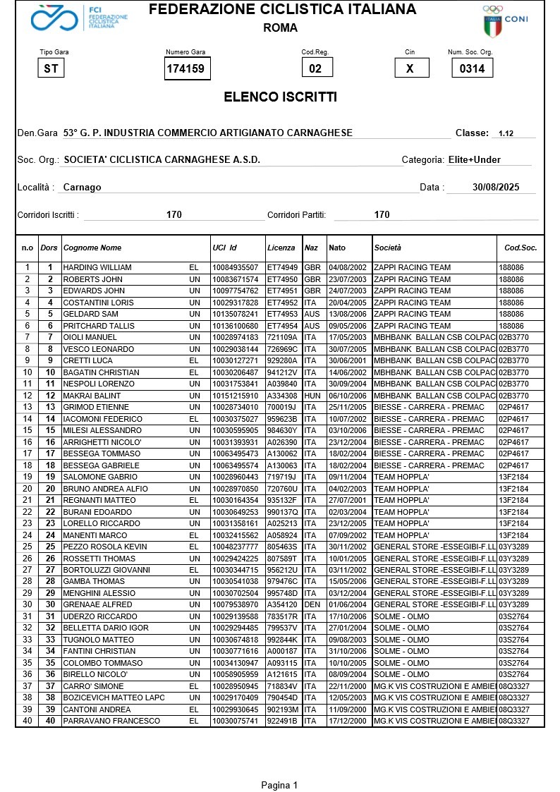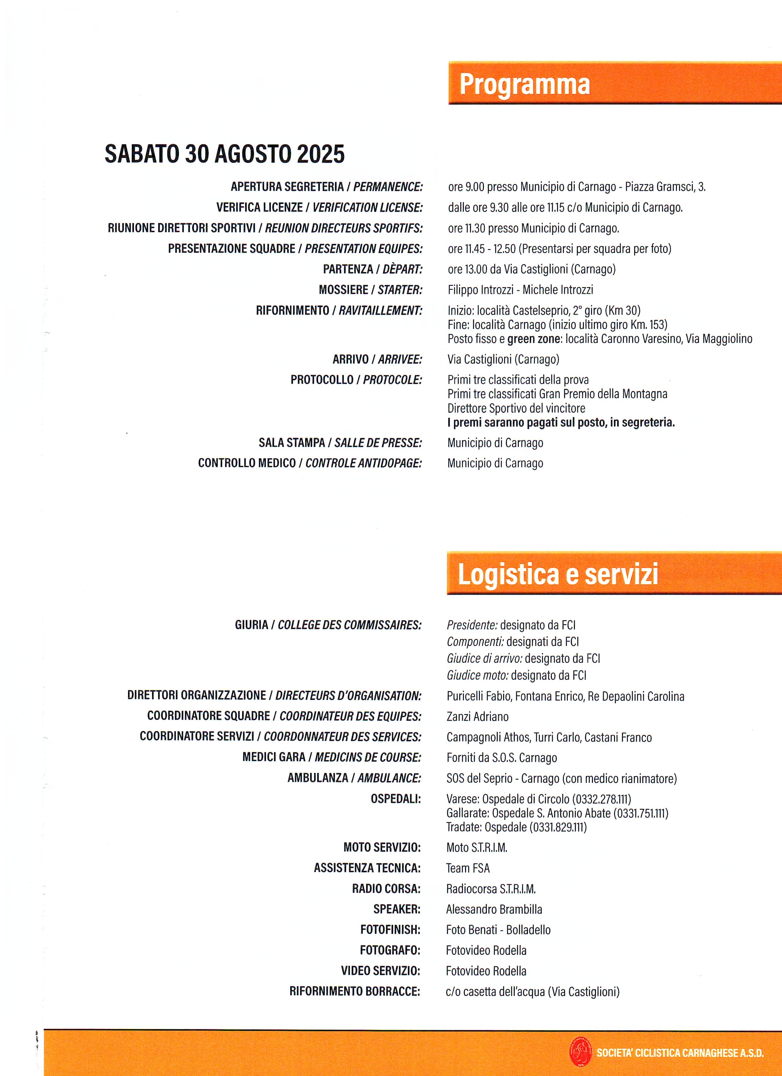 .Si gareggerà anche nell’imperituro ricordo di due Grandi Amici di Carnago e della SC Carnaghese, Alfredo Martini e Franco Ballerini, più volte graditi Ospiti nella giornata della gara o della presentazione della stessa.
