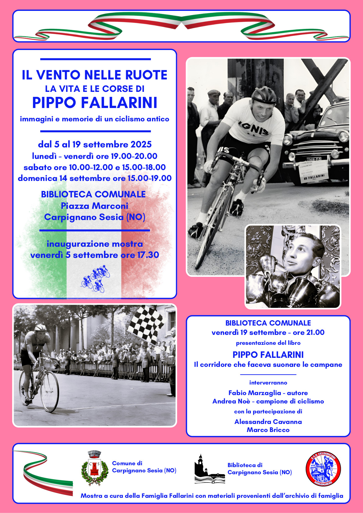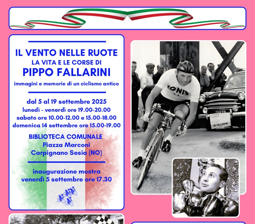 NOTA STAMPA : Carpignano Sesia celebra Pippo Fallarini: mostra, libro e letture per ricordare le imprese del campione