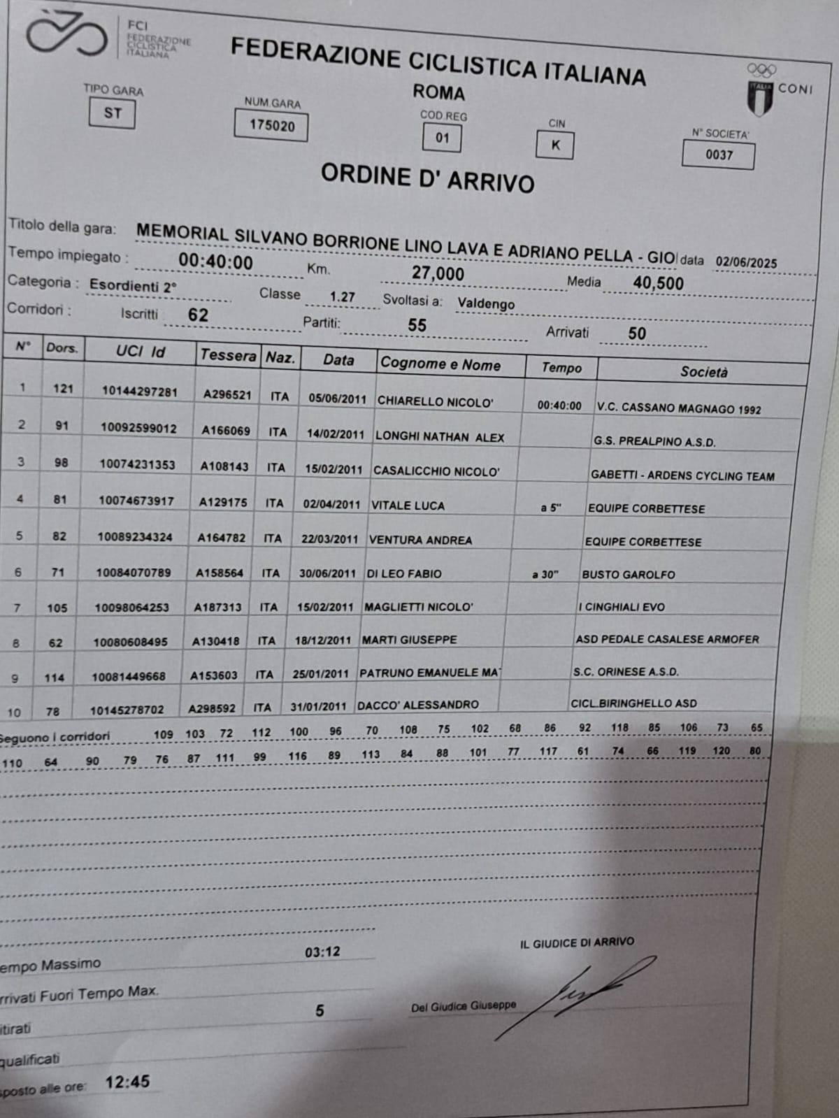 E’ lunedì 2 giugno 2025 giornata dedicata alla festività tutta dedicata alla Repubblica Italiana e Nicolò Chiarello (Velo Club Cassano Magnago 1992), da bravo velocista ha pensato un po’ a se stesso decidendo di festeggiare si la Repubblica Italiana abbinando questa ricorrenza al suo compleanno che festeggerà il prossimo 5 giugno.