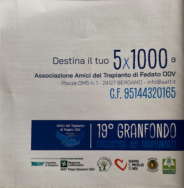 Per portare avanti le loro iniziative si affidano alla bontà dei Contribuenti affinchè nella loro dichiarazione dei redditi destinino il 5X1000 all’Associazione Amici del Trapianto di Fegato, un gesto che, economicamente, non costa proprio nulla.