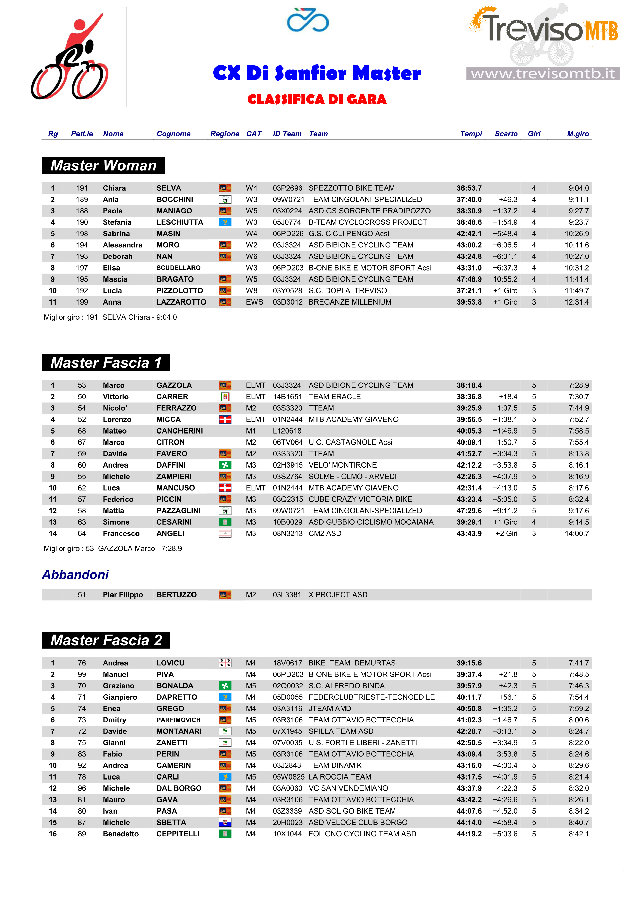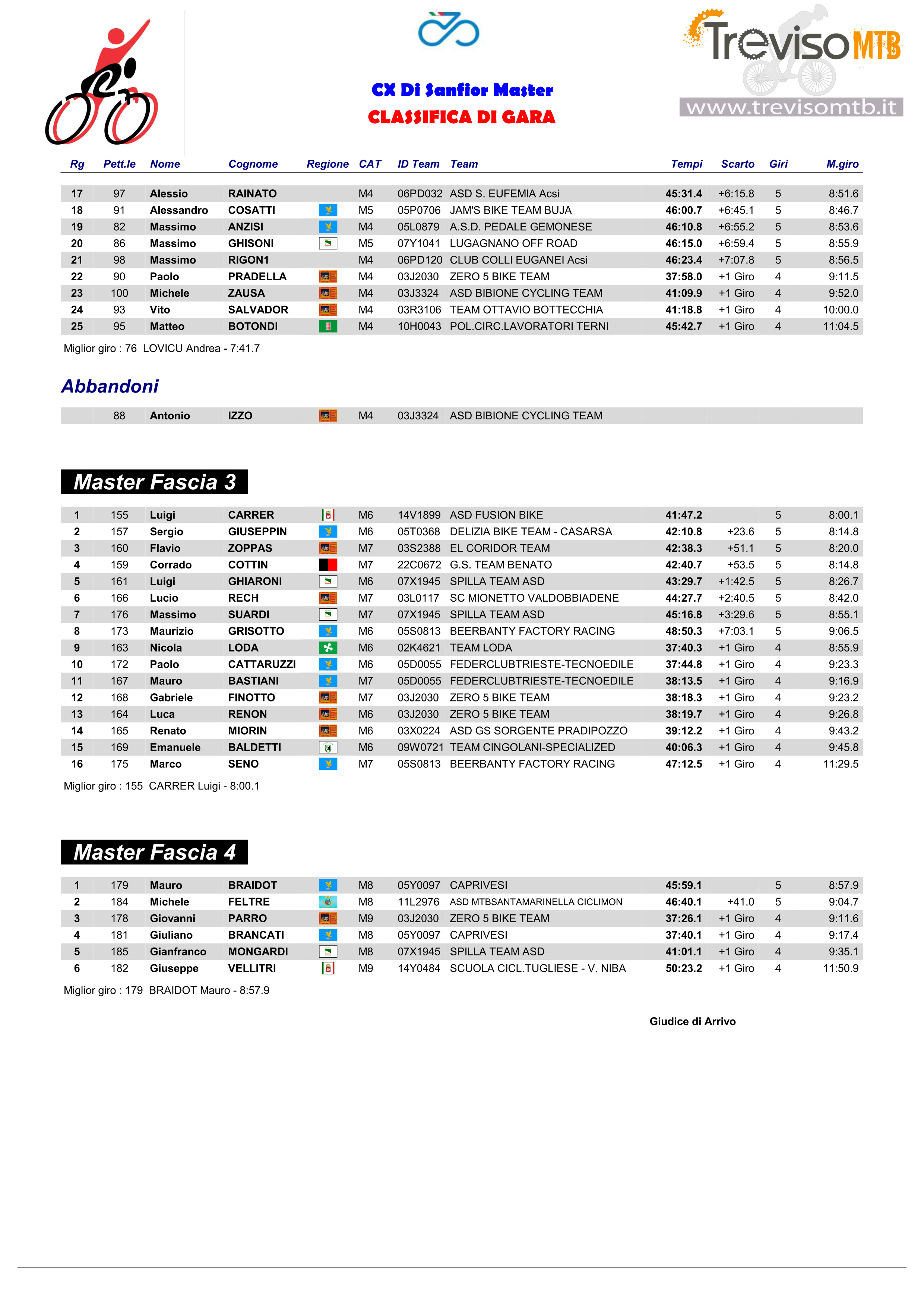 Sono stati 75 i fanghisti schieratisi al via questa mattina e, per queste categorie pubblichiamo tutti gli ordini d’arrivo e alcune foto.