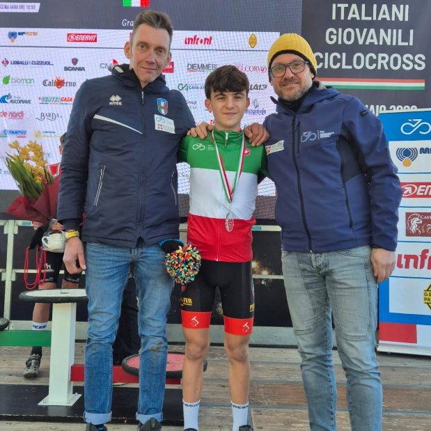 Mario Alberto, fanghista della “Mtb Academy Giaveno, torinese di Villarbasse, vince a San Fior il Campionato Italiano CX Giovanile categoria Esordienti 2° anno e indossa la prestigiosa maglia Biancorossoverde, simbolo del “Campione d’Italia”.