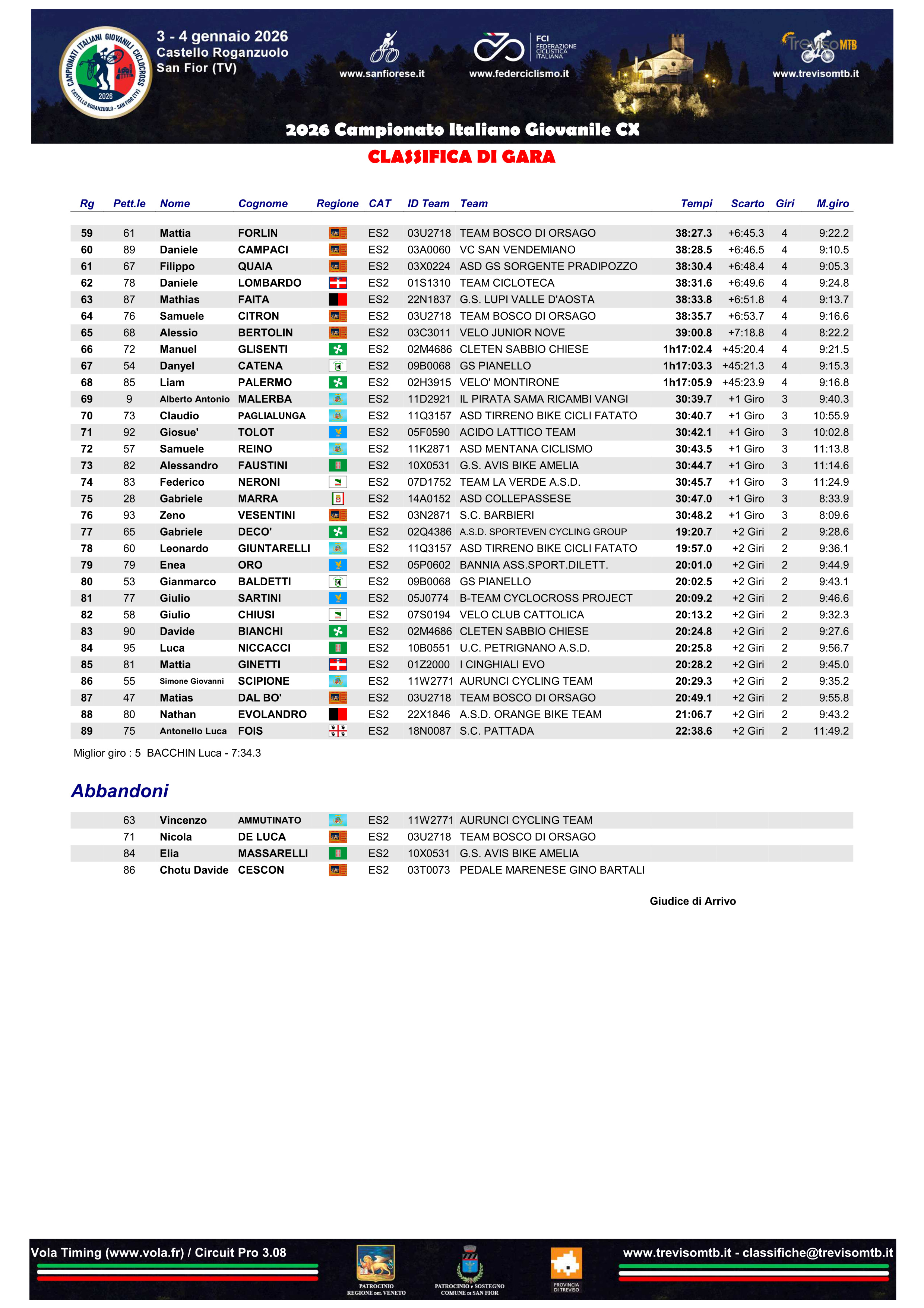 Subito dopo questi corridori, a 22″ si è piazzato il varesino di Carnago Fabio Pisarra in livrea della gloriosa Società Ciclistica Alfredo Binda-Varese, che conquista la quarta piazza ai piedi del podio.