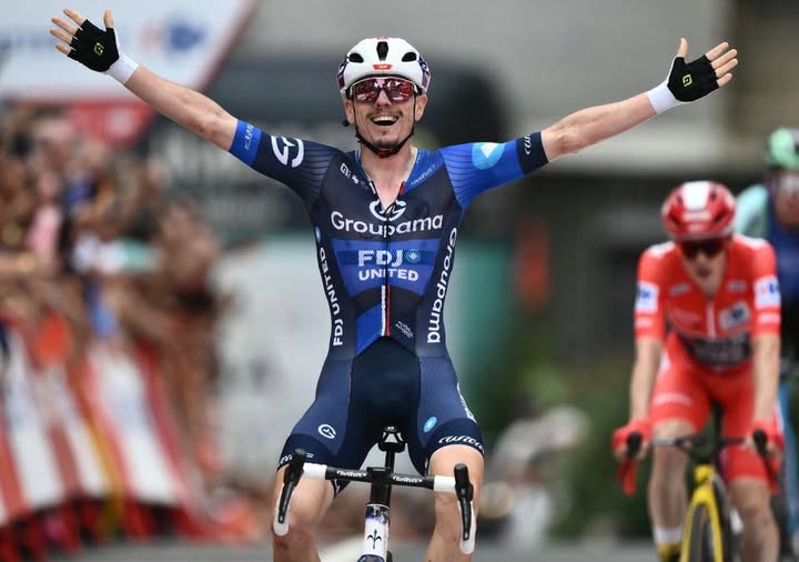 Un gruppo compatto vola verso il finale in salita, con Lidl-Trek e Visma-Lease a Bike che impongono un ritmo brutale in salita (2,6 km al 3,6%). Pedersen è in testa per affrontare l’ultima curva, a 50 metri dal traguardo… Ma David Gaudu (Groupama-FDJ) riesce a superarlo, conquistando la sua terza vittoria di tappa alla Vuelta dopo i precedenti successi a La Farrapona e La Covatilla nel 2020. Jonas Vingegaard completa il podio di tappa per conservare La Roja, nonostante Gaudu lo abbia raggiunto in tempo.