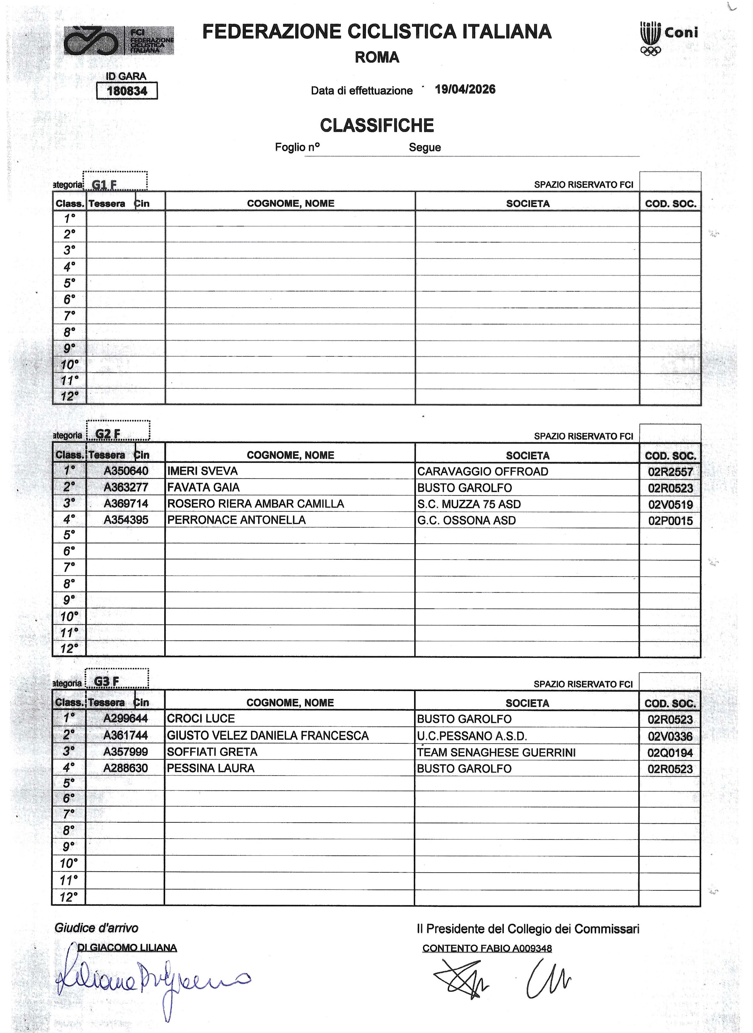 Purtroppo la categoria G1 femminile è andata deserta; Passiamo subito alla categoria G2 con la foto della vincitrice della gara, Sveva Imeri