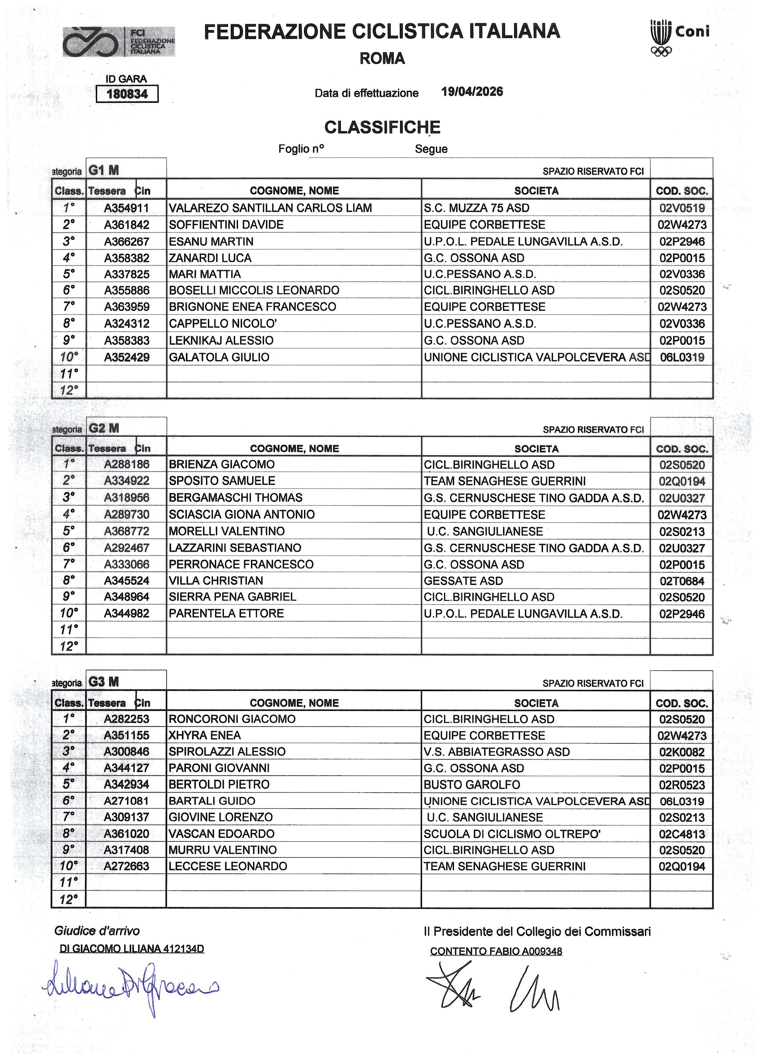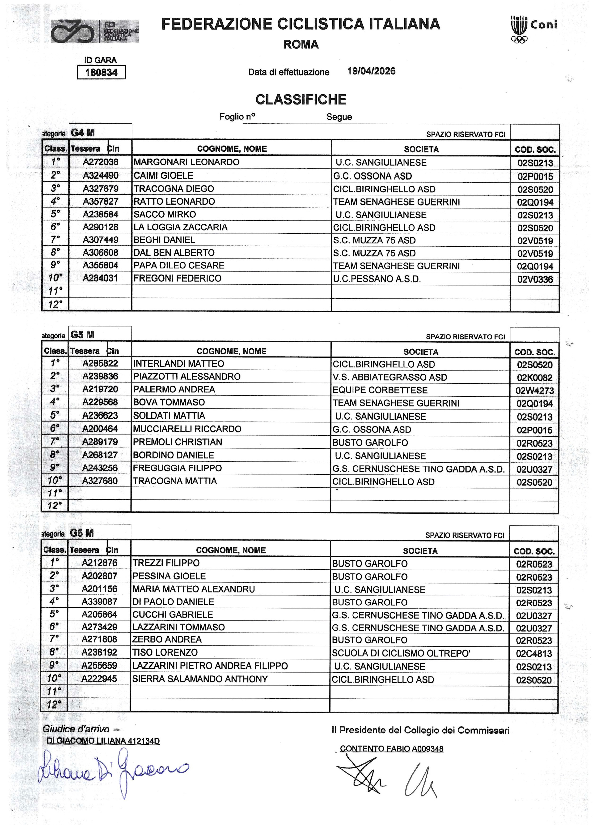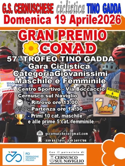 Con i Dirigenti del G.S. Cernuschese-Tino Gadda in cabina di regia domenica 19 aprile 2026 si è disputata a Cernusco sul Naviglio la 57° edizione del Trofeo Tino Gadda valevole anche per l’assegnazione del Gran Premio Conad.