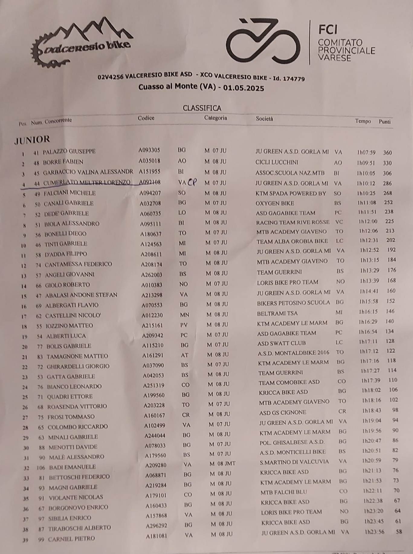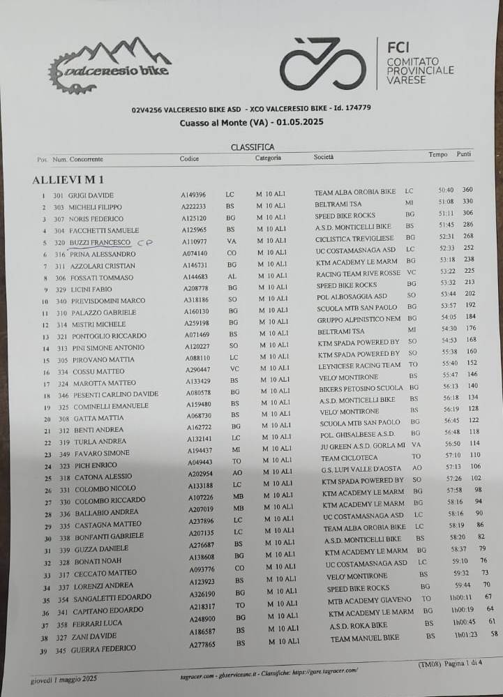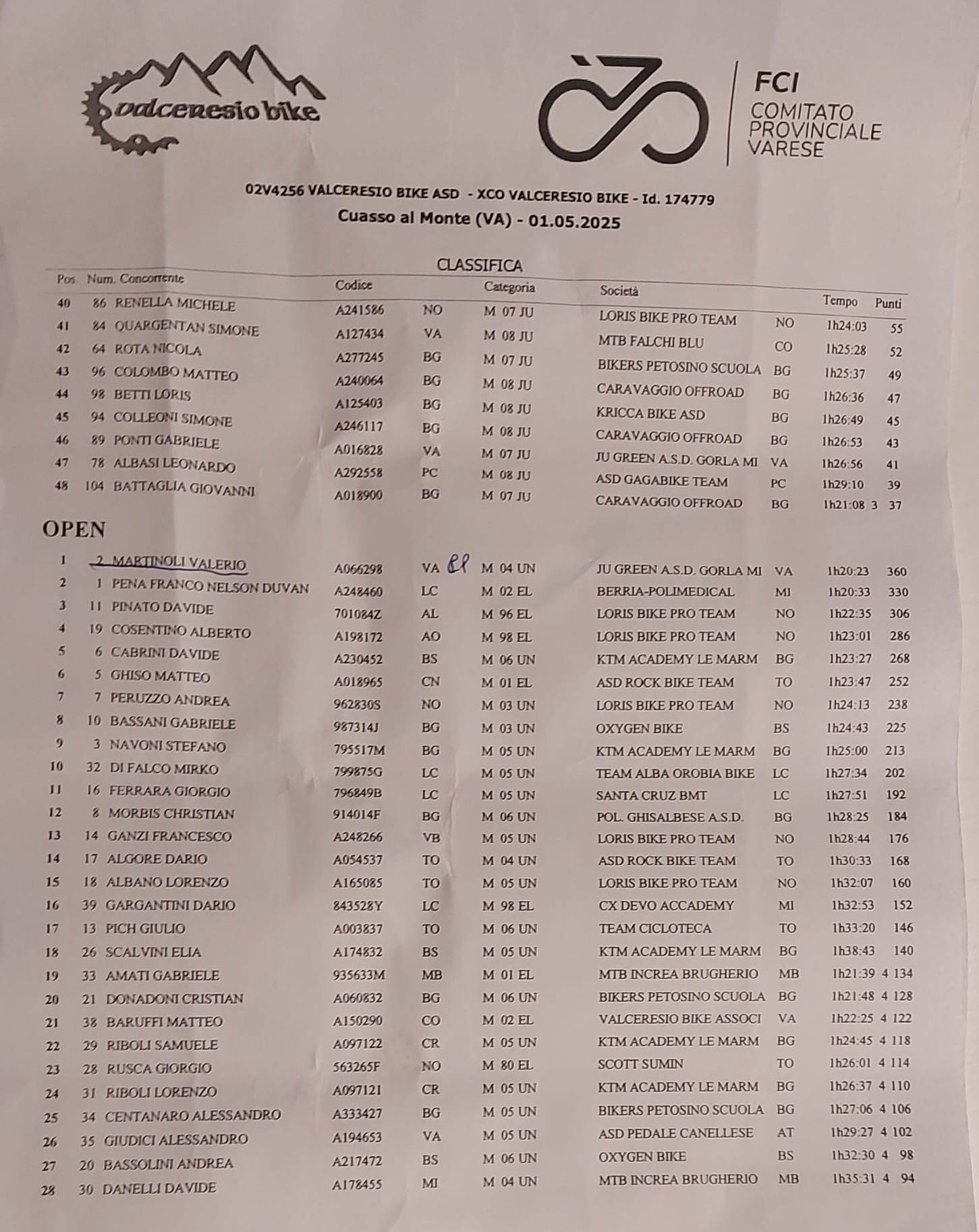 XCO Cross Country Top Class – Cempionato Provinciale di Varese – Categorie Maschili