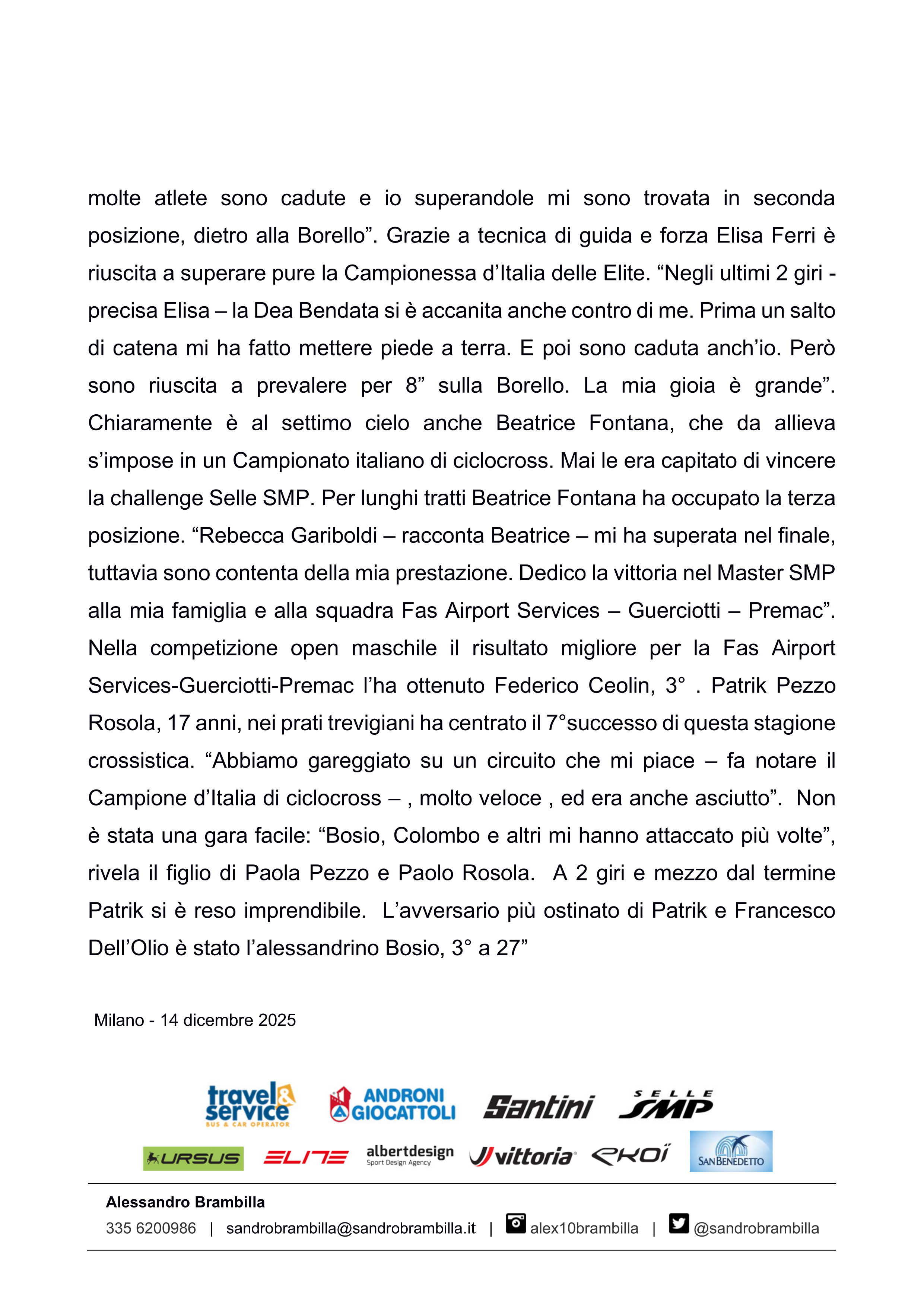 Il mondo del cilcismo locale e nazionale ha trovato una nuova e qualificata vetrina online. Si tratta del sito www.pedaletricolore.it, fondato e diretto da Vito Bernardi, giornalista pubblicista, conosciuto da tutti nell'ambiente delle due ruote. Nelle sue pagine, Bernardi raccoglie notizie, comunicati stampa, immagini di corse, atleti, società, dirigenti, e la più ampia informazione su quello che accade quotidianamente nell'Alto Milanese, ma anche a livello nazionale ed internazionale