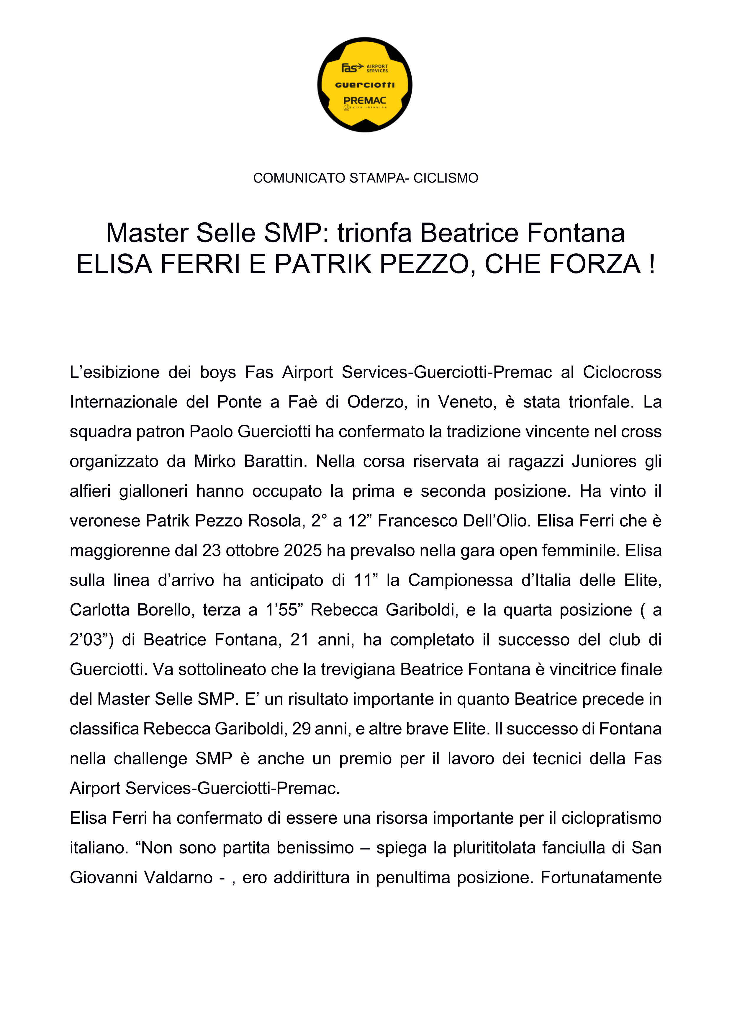 Fas Airport Services-Guerciotti-Premac : Comunicato Stampa