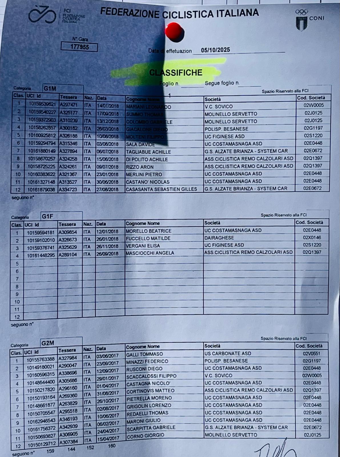 La gara comasca è stata organizzata nel contesto della Baby Challanger Lariano 2025 ed era valida per l’assegnazione del 10° Memorial Piercarlo Mascetti.