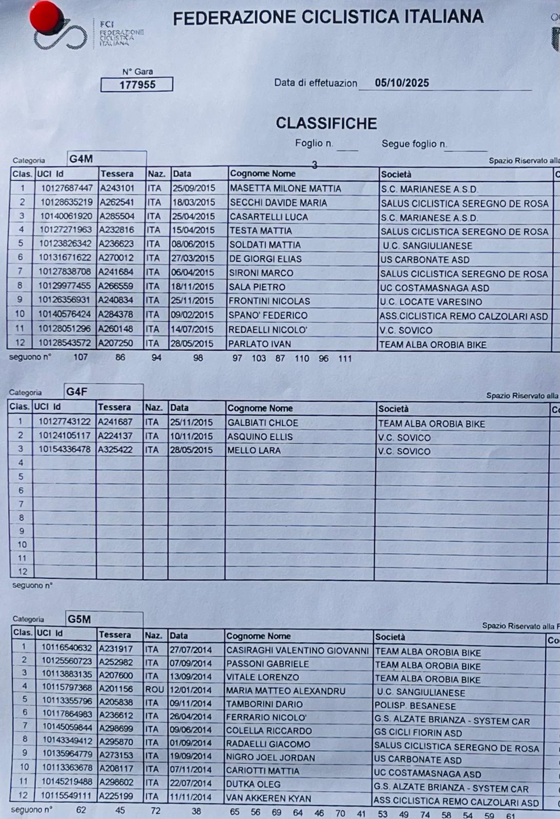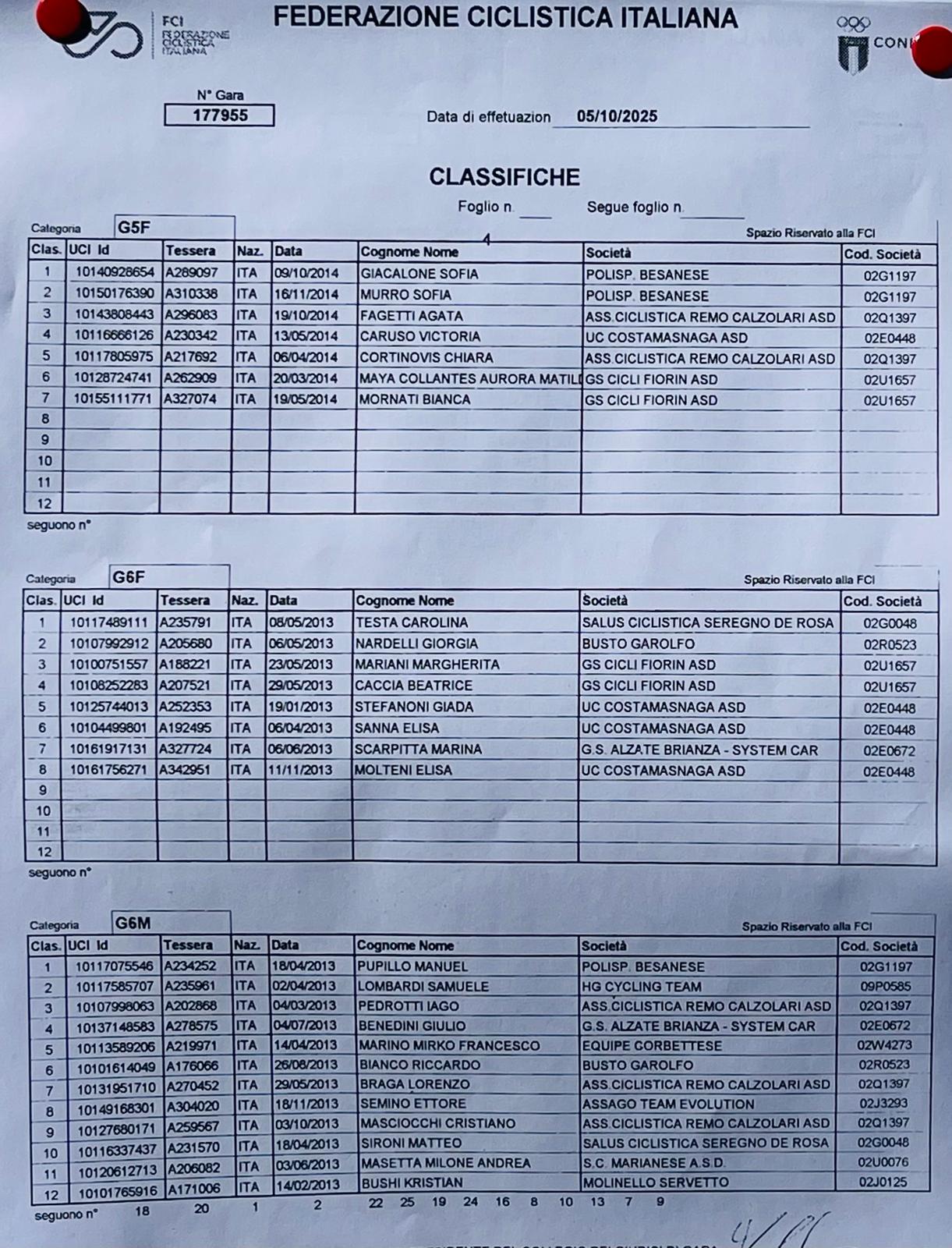 Con ritardo, (ma è colpa mia), eccovi le classifiche di tutte le categorie sia al maschile che al femminile, degli Atleti/e che si sono schierati sulla linea di partenza delle varie gare riservate alle rispettive categorie dalla G1 alla G6.