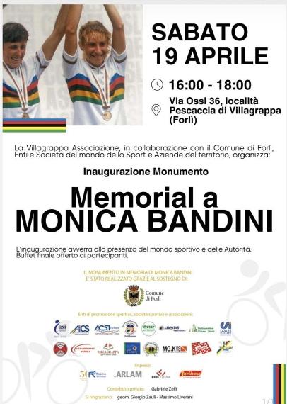 Sabato 19 aprile, ricorrenza del quarto anniversario dalla morte di Monica Bandini, verrà inaugurato un Monumento “Memorial a Monica Bandini” in località Pescaccia di Villagrappa (Forlì).