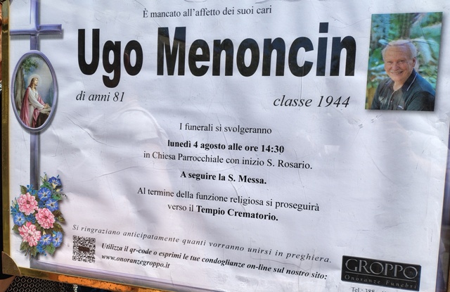 L’Estremo saluto a Ugo Menoncin