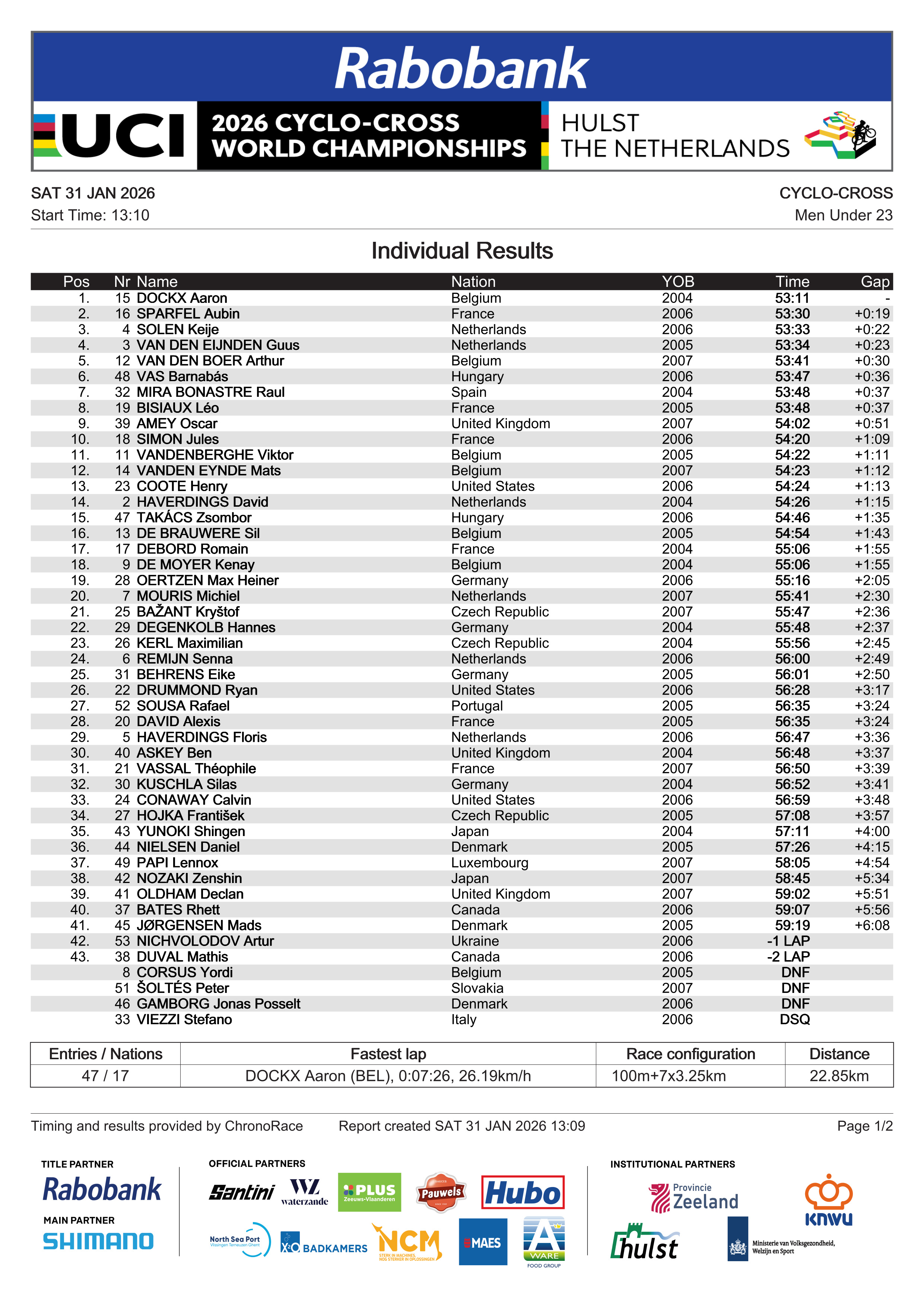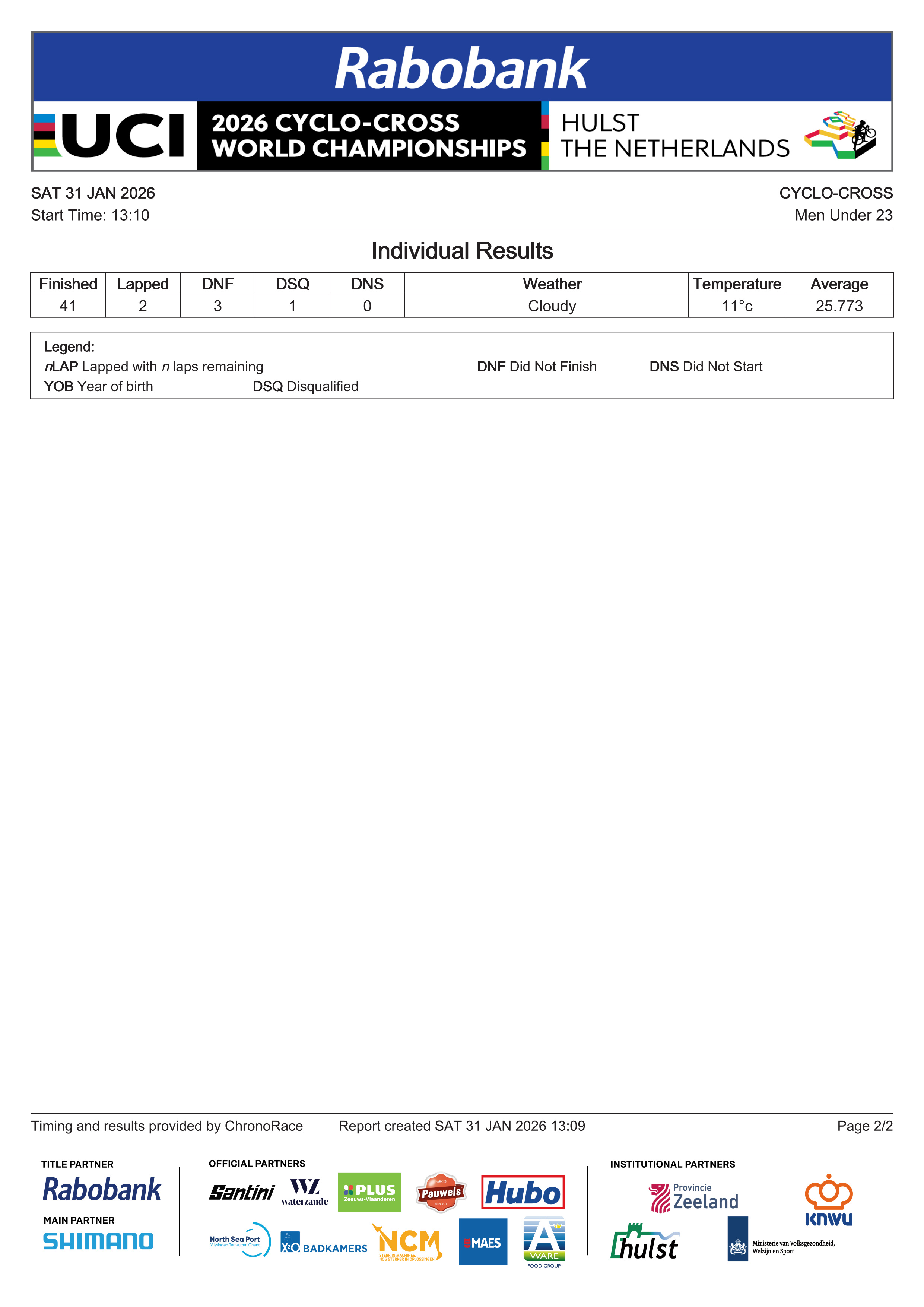 Ha conquistato, un po’ da oustider, il titolo precedendo il francese Aubin Parfel di 19″ e l’olandese Kejie Solen di 22″ in un combattutissimo finale che ha visto tutta la top ten nell’arco di poco superiore al minuto di distacco tra loro.