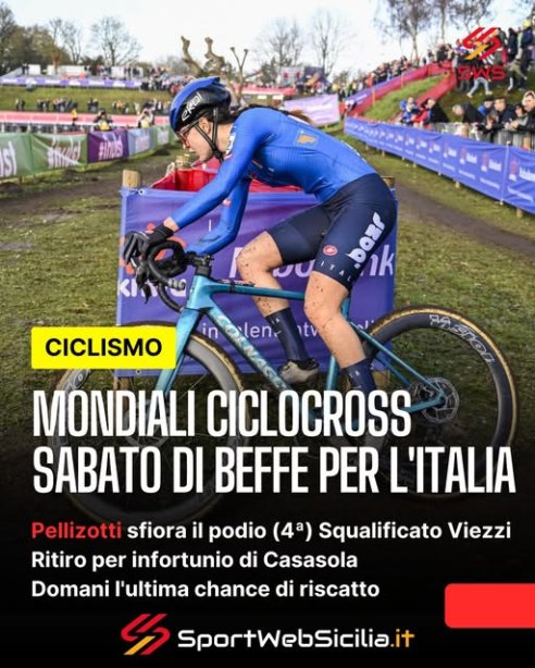 L’Italiano Stefano Vezzi, ciclocrossista che ra perfettamente in grado di inserirsi nella lotta iridata si è praticamente autoescluso perchè è contravvenuto al regolamento UCI cambiando la sua bicicletta un po’ lontano dal gazebo della nostra Nazionale,