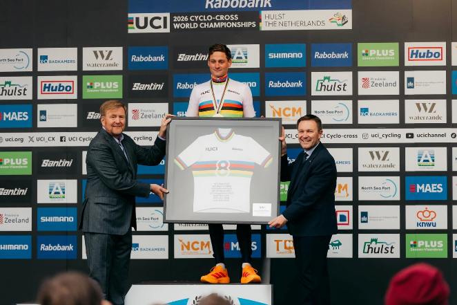 E’ partito subito a tutta oggi Mathieu e si è subito avvantaggiato su tutti andando a ricevere l’ottava maglia iridata dalle mai del suo Re Guglielm0 Alessandro D’Olanda e dal presidente dell’U.C.I. Davide Lappartient.