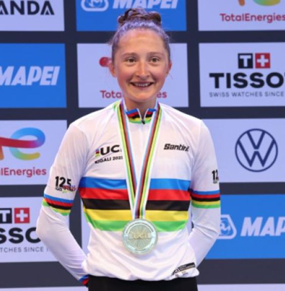 Applausi meritatissimi dunque per “Maddalena” Atleta tesserata per il Team “EF Educational Oatly”, la ragazza ventiquattrenne (è nata il 10.08.2001 a Sherbroke in Canada) che per 12 mesi indosserà la Maglia con i colori dell’Iride prima di rimetterla in palio proprio a casa sua in Canadà e, parafrasando qualche nota di una nota canzone…..”aveva una casetta piccolina in Canada con vasche, pesciolini e tanti fiori di lillà” ….ed ora aggiungerà pure e con pieno diritto le parole….ed anche una maglia con tanti colori….arcobaleno…”