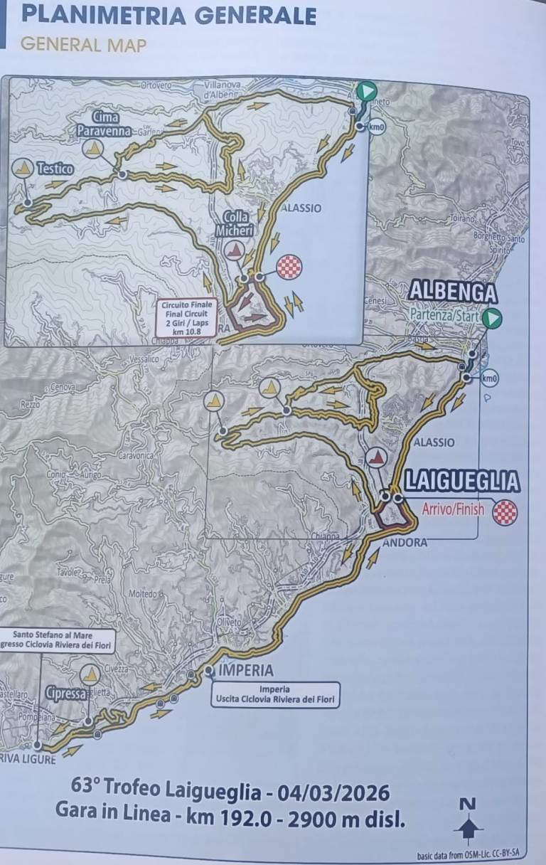 La 63a edizione ha visto una nuova partenza ad Albenga, con l’iconica salita della Cipressa e un tratto di 12,6 km della Ciclovia Riviera dei Fiori, prima del tradizionale e decisivo circuito di Colla Micheri e dell’arrivo a Laigueglia.