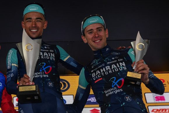 La Bahrain Victorious ha controllato la corsa fin dalle prime fasi, lavorando per i leader Tiberi e Buitrago sull’impegnativo percorso di 192 km.
