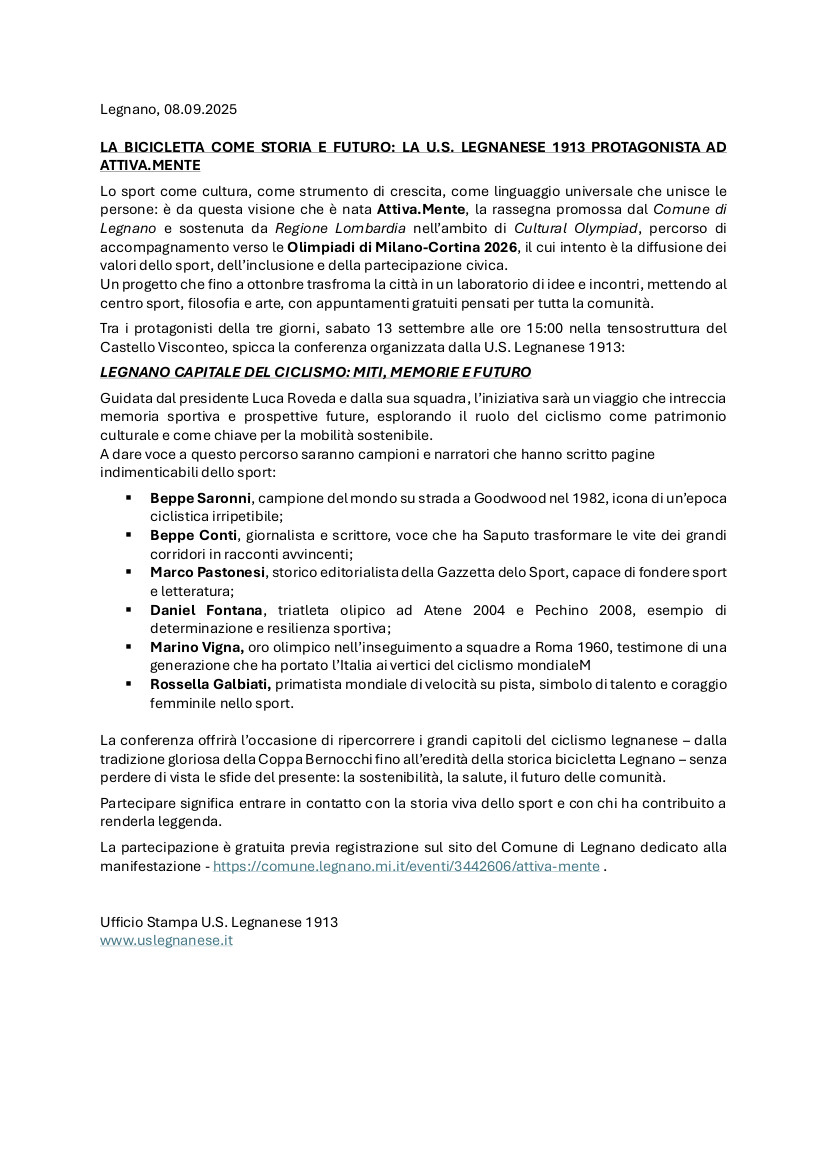 Legnano (Milano), 08 settembre 2025