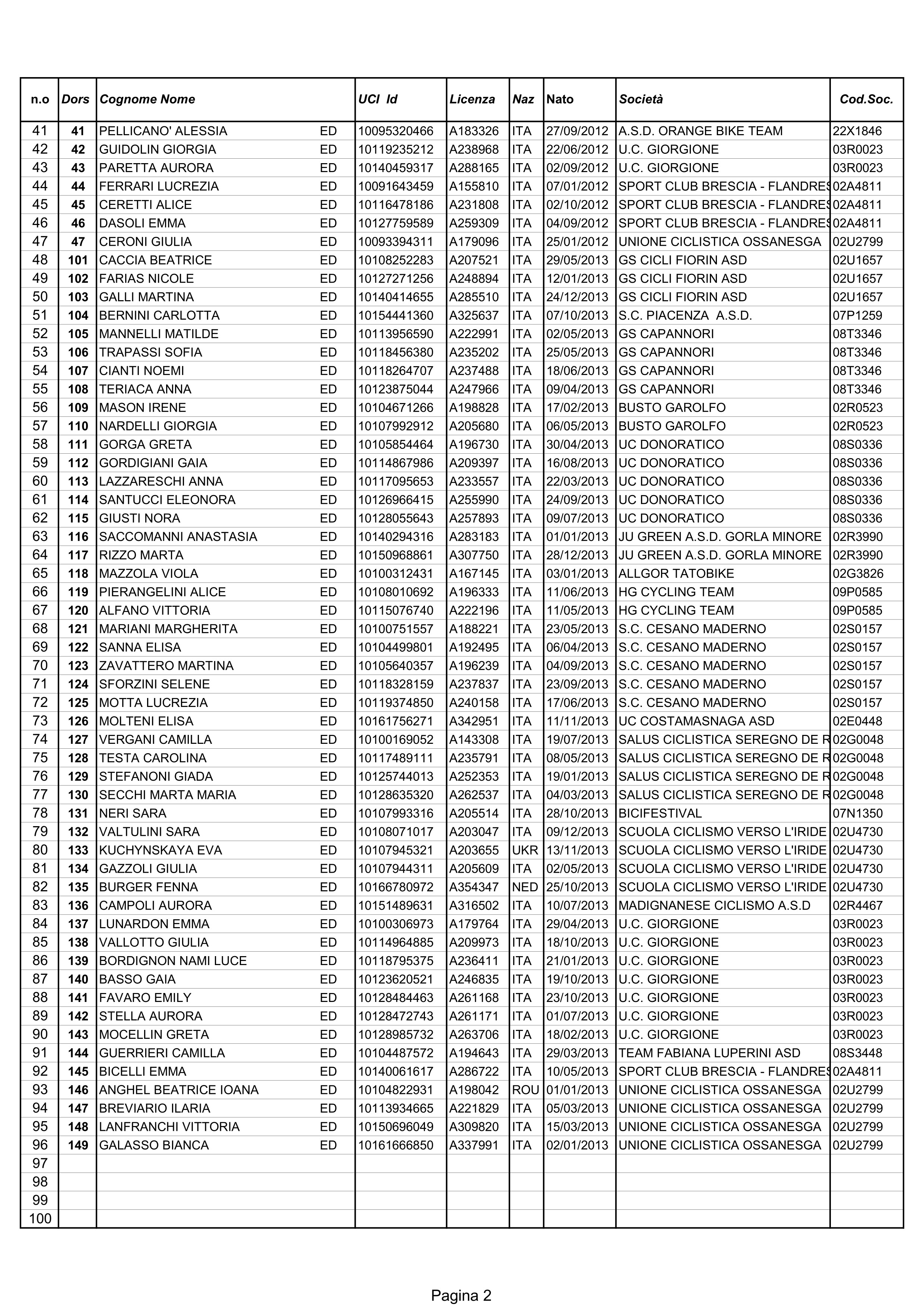 Di seguito pubblichiamo l’elenco delle Iscritte e notizie utili a chi vorrà seguire la corsa a bordo strada sul circuito.