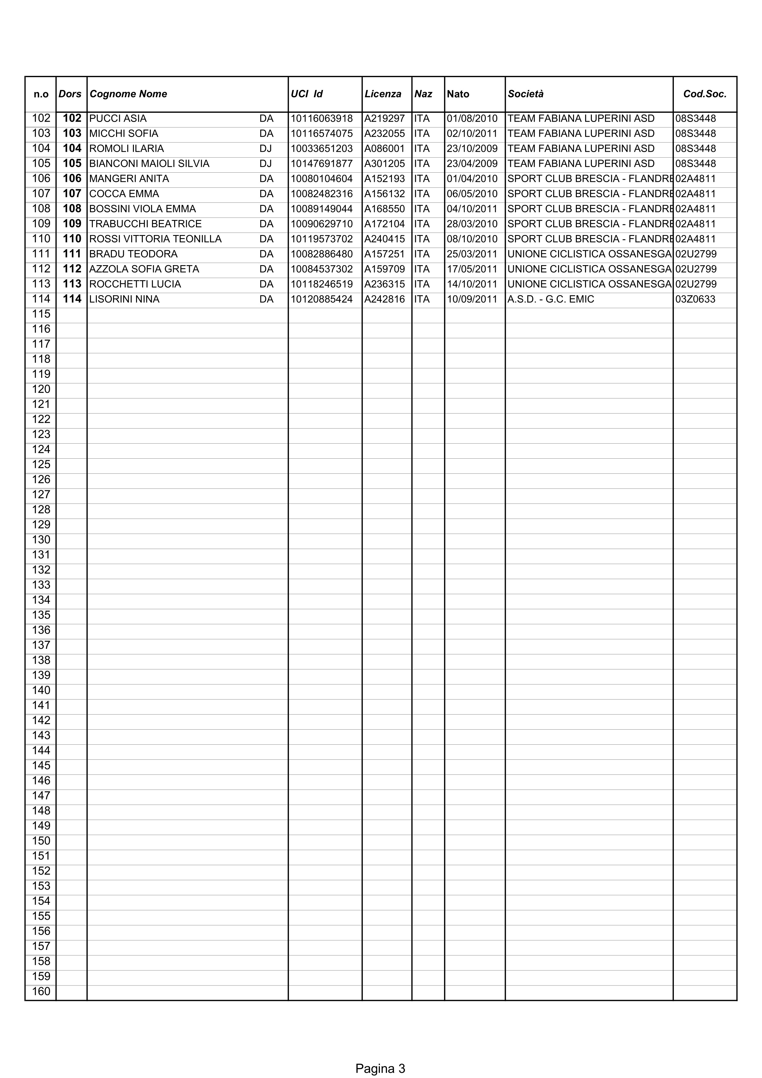 Di seguito potrete prendere visione e scaricare l’elenco delle Iscritte ricco di 114 Atlete tra le quali anche una Rappresentanza del Messico, la “A.R. Monex Pro Cycling Team” squadra che ha una foresteria nella Repubblica di San Marino e che ha anche lanciato nel professionismo Jsaac Del Toro il professionista che in livrea dello UAE Team Emirates, l’anno scorso si è laureato Campione Nazionale del Messico su strada e nella crono oltre ad avere vinto una ventina di gare molte delle quali di grande livello internazionale.