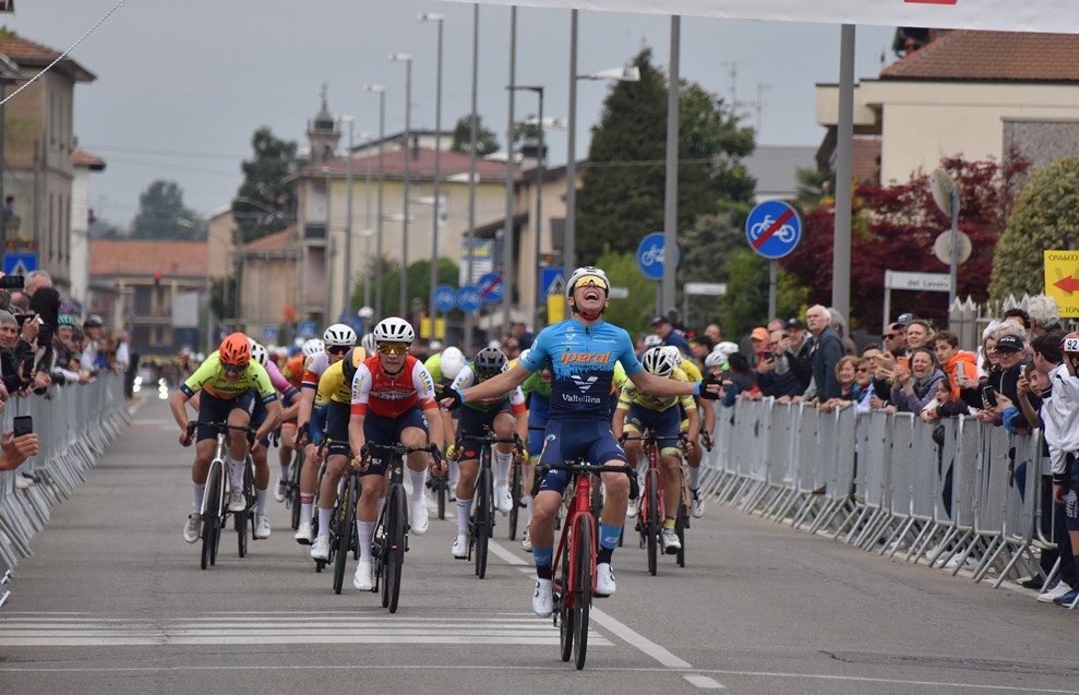 In evidenza anche il bustese Lorenzo De Vecchi (Bustese Olonia); il Campione d’Italia Ciclocross, Alex Nathan Longhi (Senaghese-Guerrini) e Davide Martinenghi (SC Romanese) poi nel finale il gruppo si è praticamente ricompattato e sul lungo vialone d’arrivo Previsdomini ha colto l’attimo accorgendosi di un buco di ¾ metri creatosi alla sua ruota a meno di 100 metri dalla linea bianca ha inarcato la schiena andando a cogliere il suo primo successo sulle due ruote spinte dalla forza dei pedali.