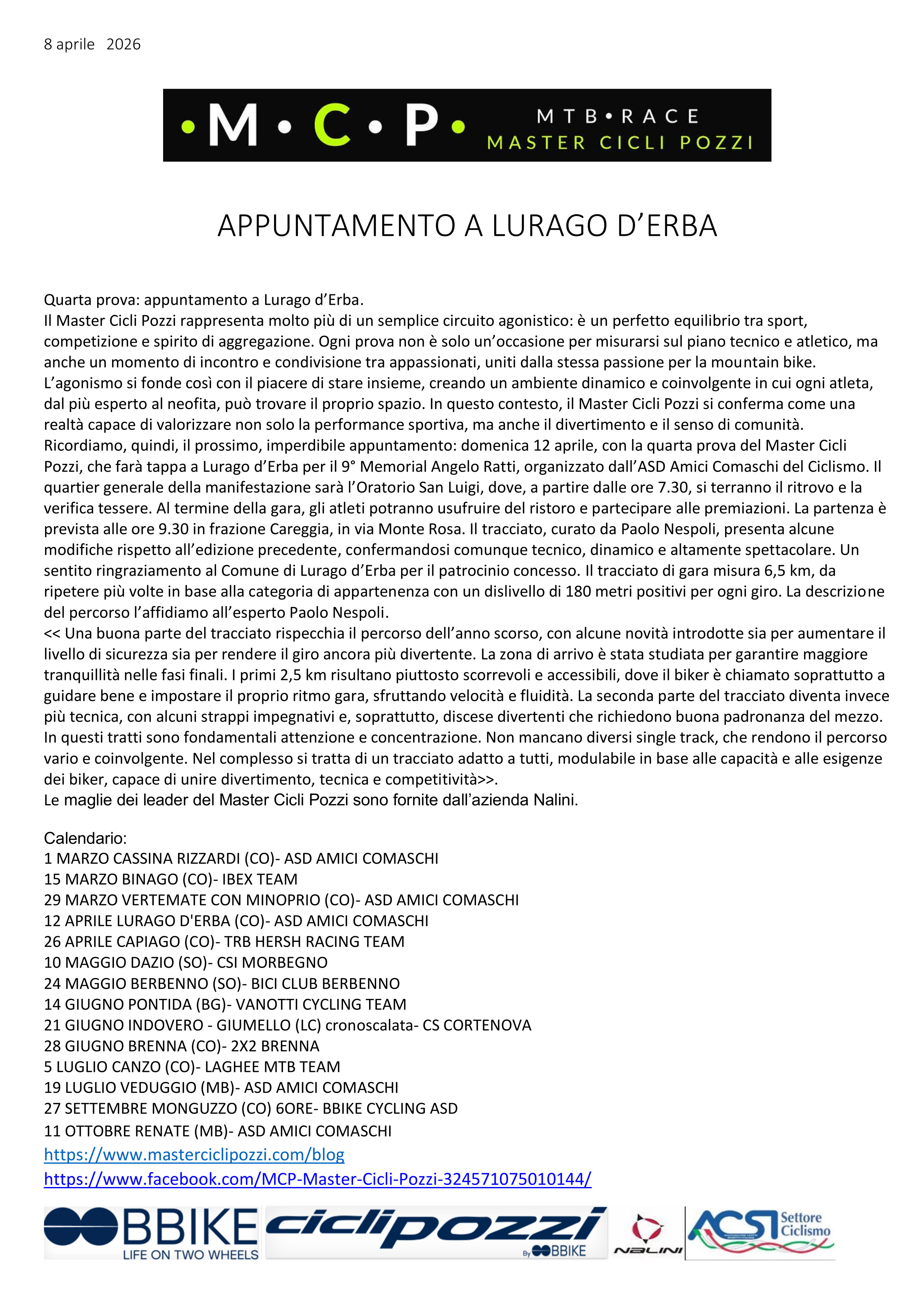 Il mondo del cilcismo locale e nazionale ha trovato una nuova e qualificata vetrina online. Si tratta del sito www.pedaletricolore.it, fondato e diretto da Vito Bernardi, giornalista pubblicista, conosciuto da tutti nell'ambiente delle due ruote. Nelle sue pagine, Bernardi raccoglie notizie, comunicati stampa, immagini di corse, atleti, società, dirigenti, e la più ampia informazione su quello che accade quotidianamente nell'Alto Milanese, ma anche a livello nazionale ed internazionale