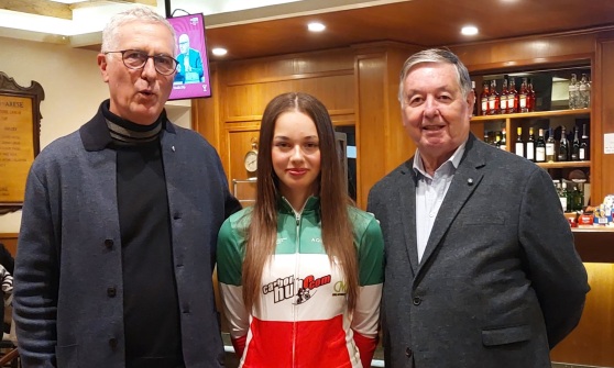 Nella foto Catarina Prataviera con (da sinistra) i panathleti Vittorio Ballerio e Sergio Gianoli.